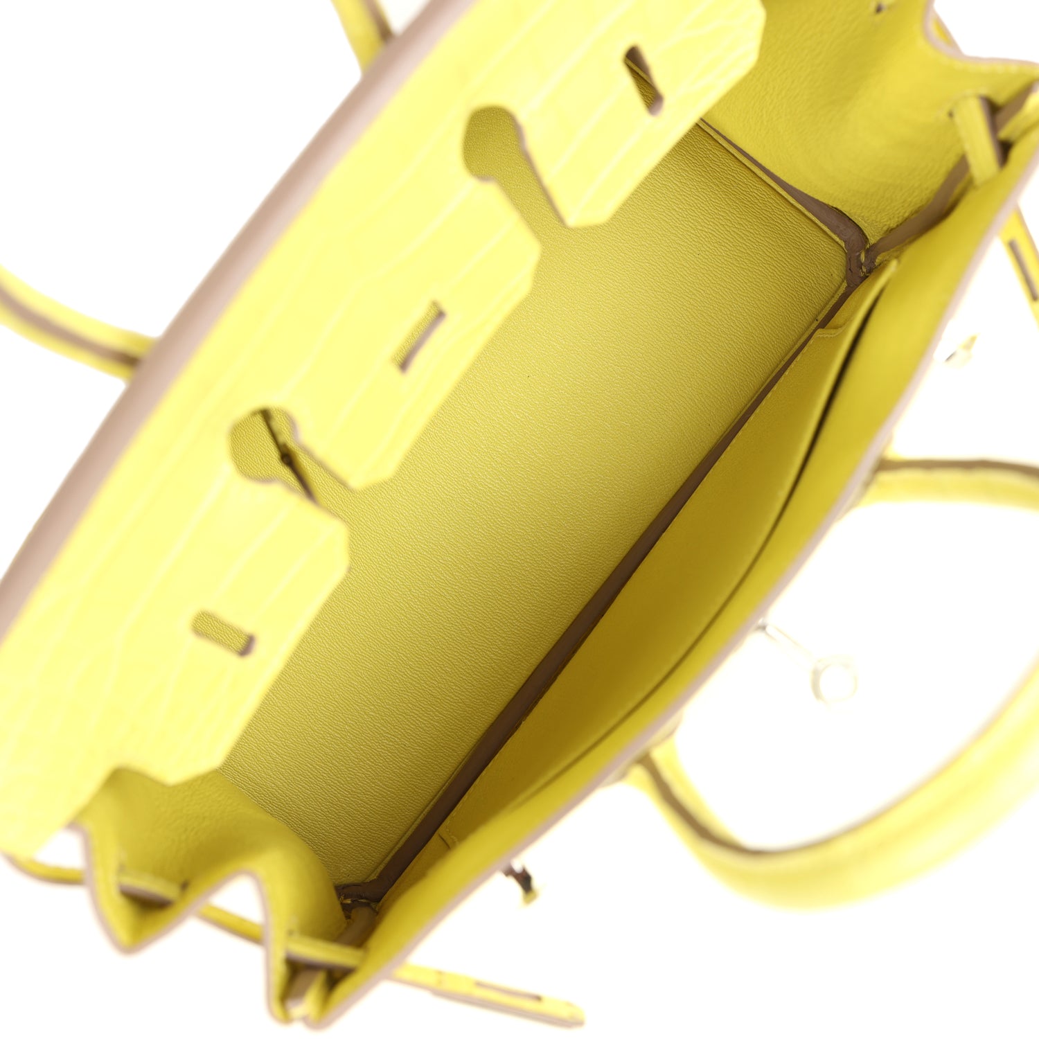 The interior is lined with Lime chevre and has a zip pocket with an Hermes engraved zipper pull and an open pocket on the opposite side.