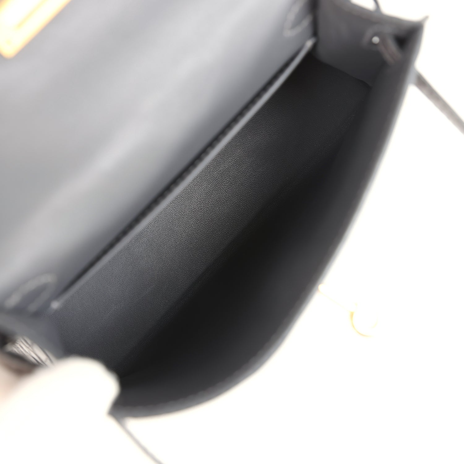 The interior is lined with Graphite lambskin leather and has one open pocket on the back wall.