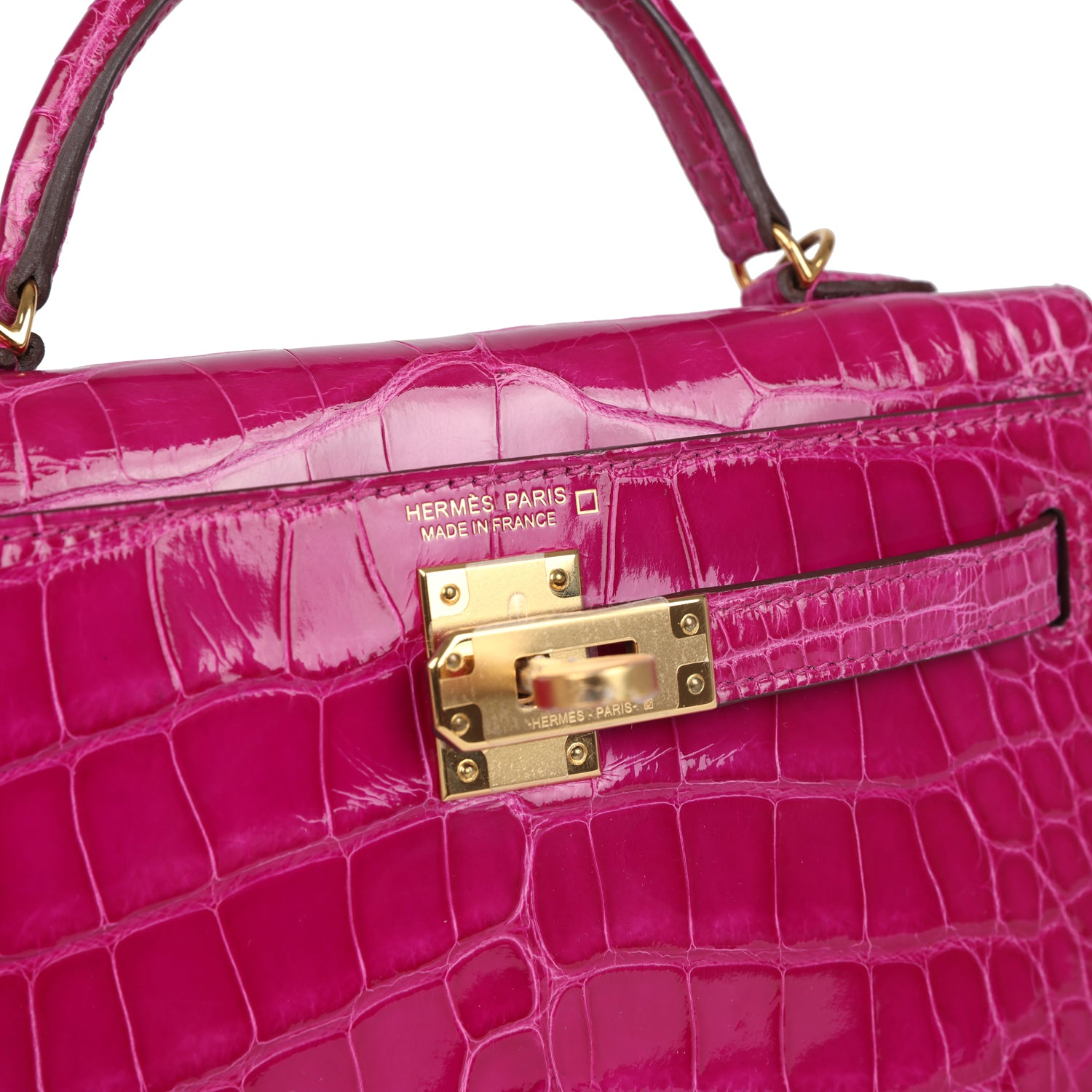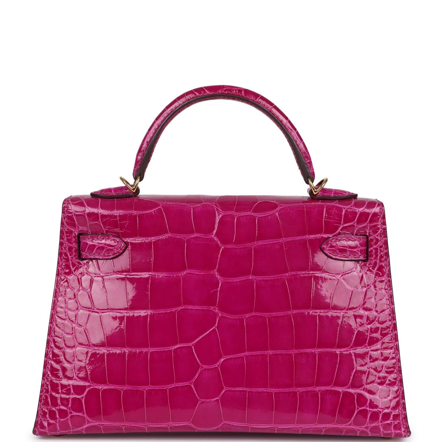 Hermes Kelly Sellier 20 Rose Scheherazade Shiny Alligator Gold Hardware