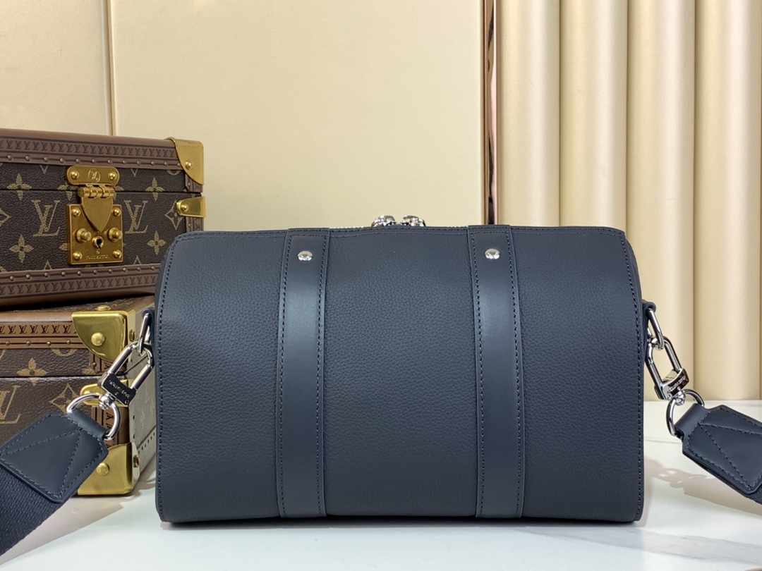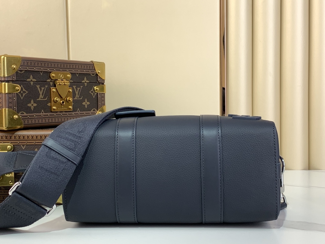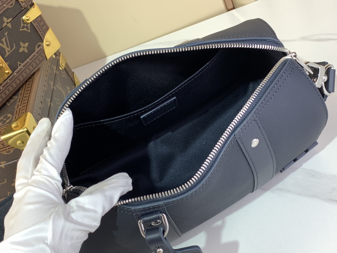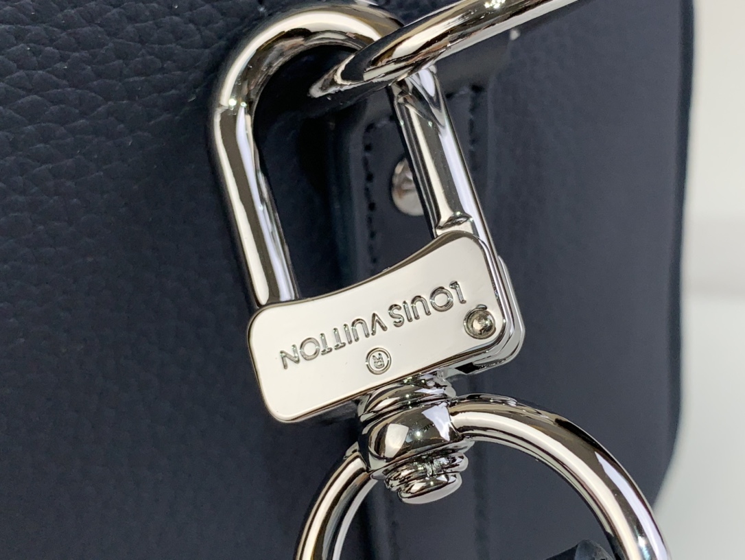The City Keepall in LV Aerogram cowhide-leather is a practical small bag, signed with metallic tone-on-tone LV Initials. It features the lateral side bands seen on all the Keepall bags and the distinctive name tag found on all the bags of the Aerogram collection. The removable strap adjusts for shoulder and cross-body wear.