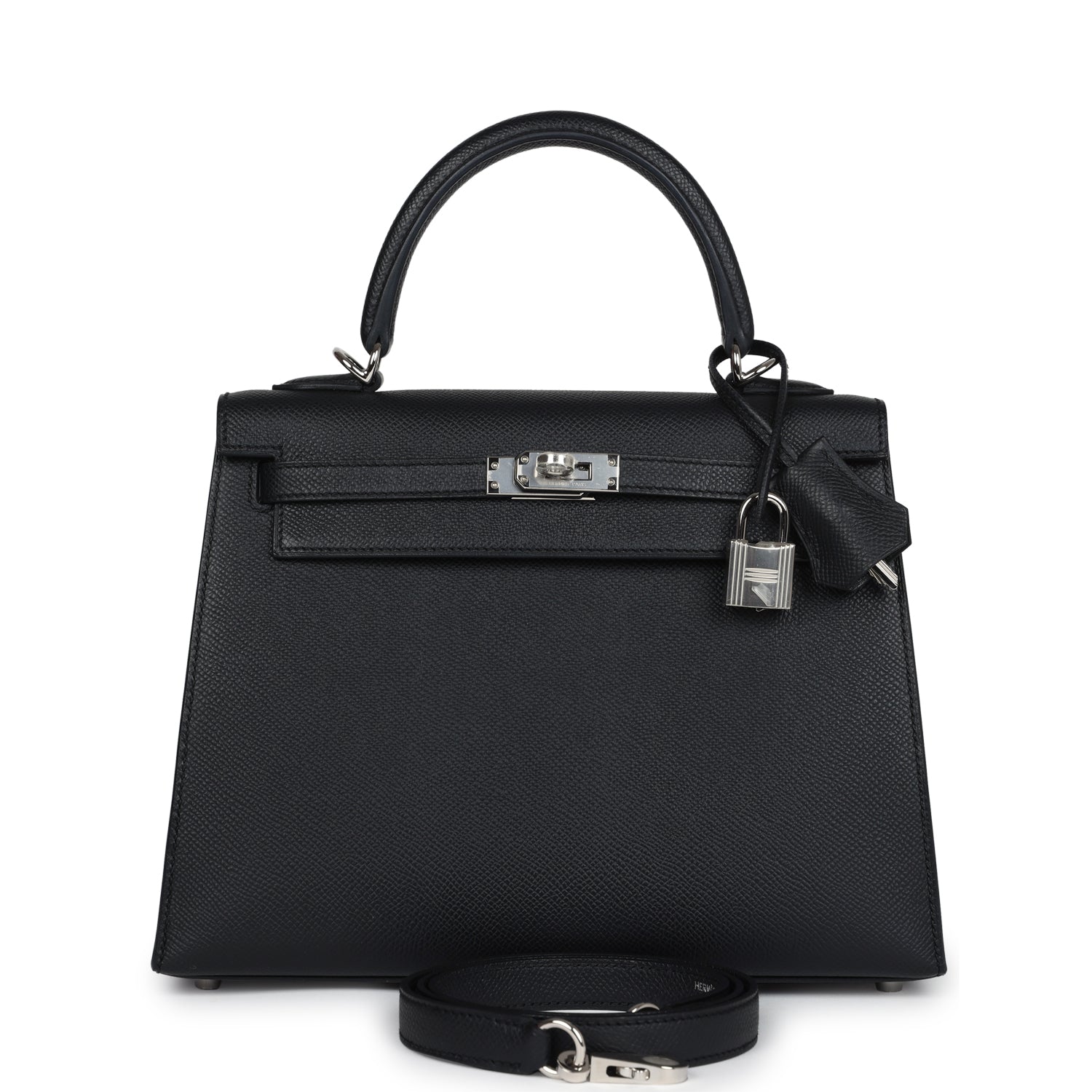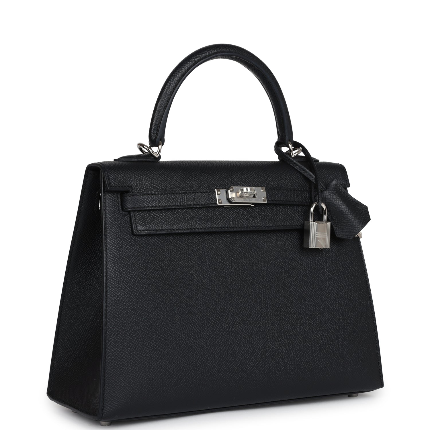 Hermes Kelly Sellier 25 Black Epsom Palladium Hardware
