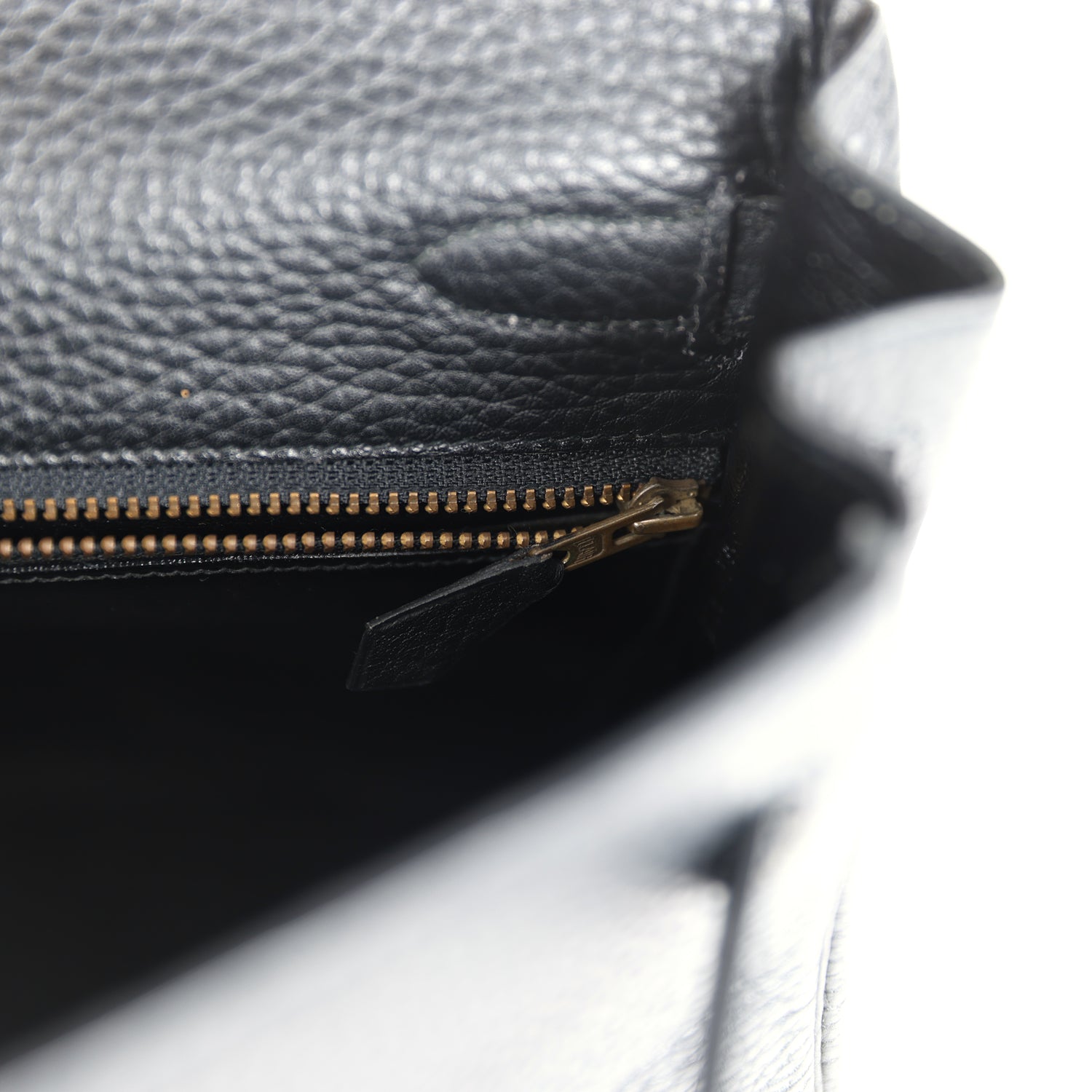The interior is lined with Black chevre leather and has one zip pocket with an Hermès engraved pull and two open pockets on the opposite side.