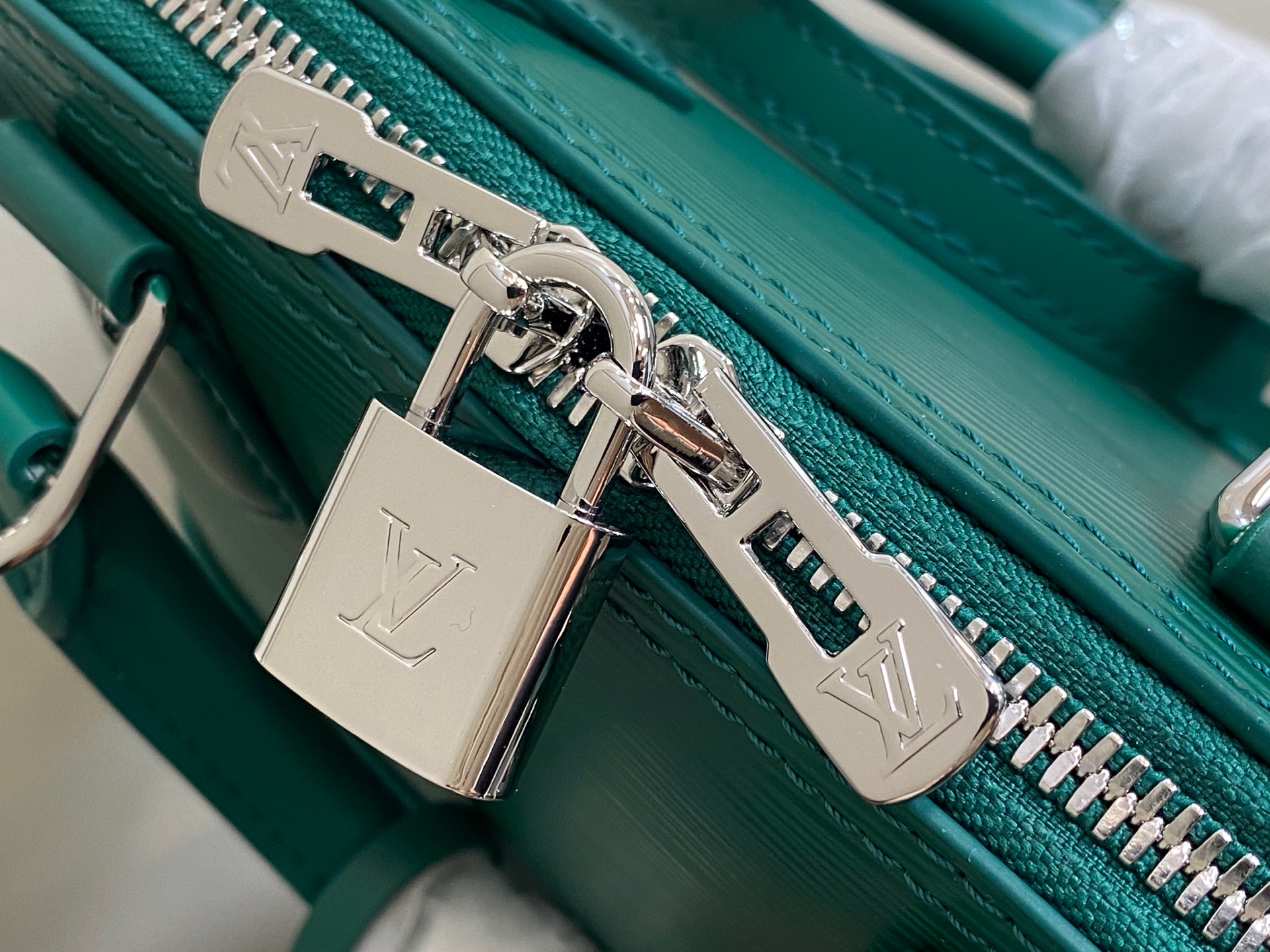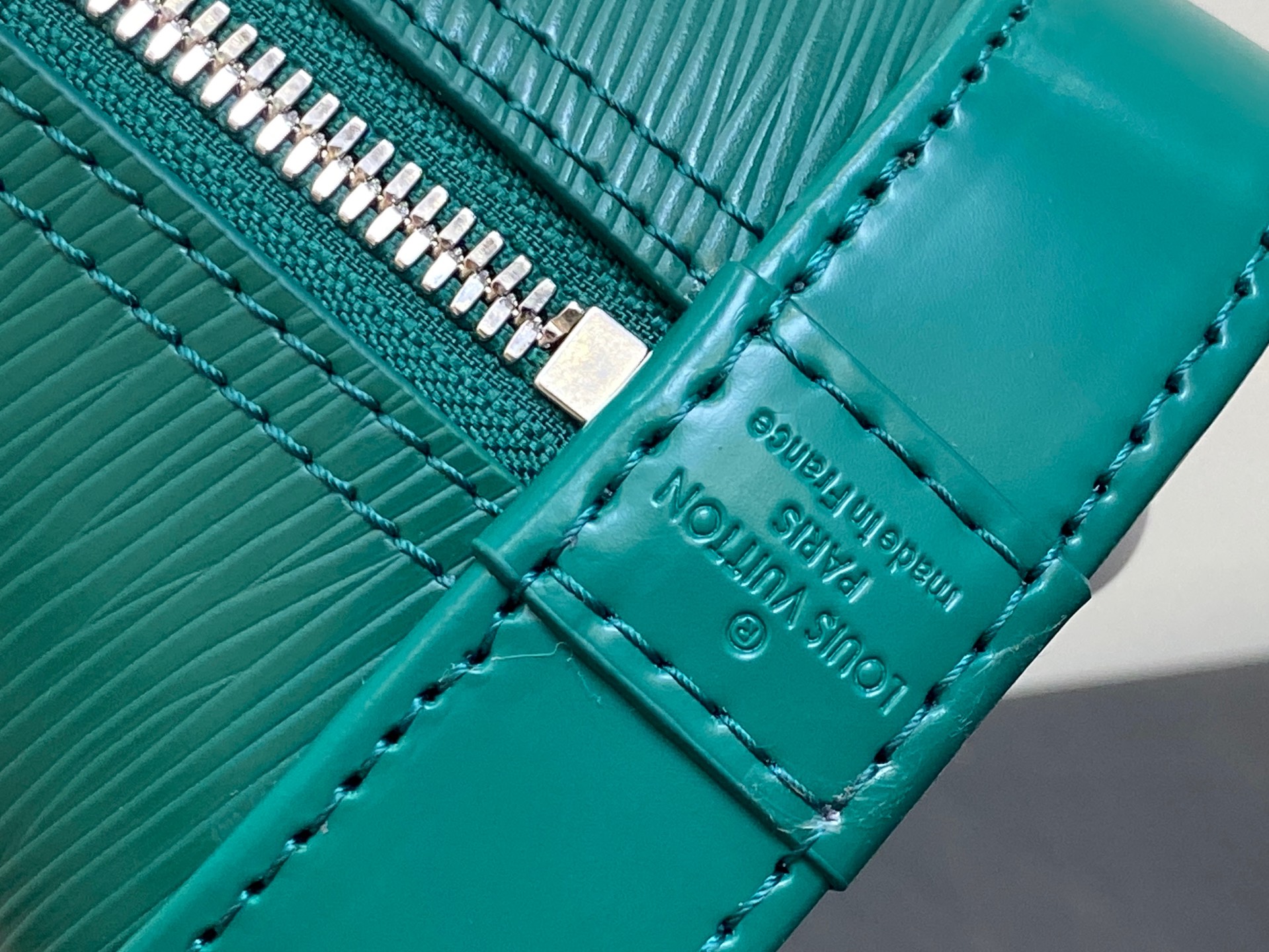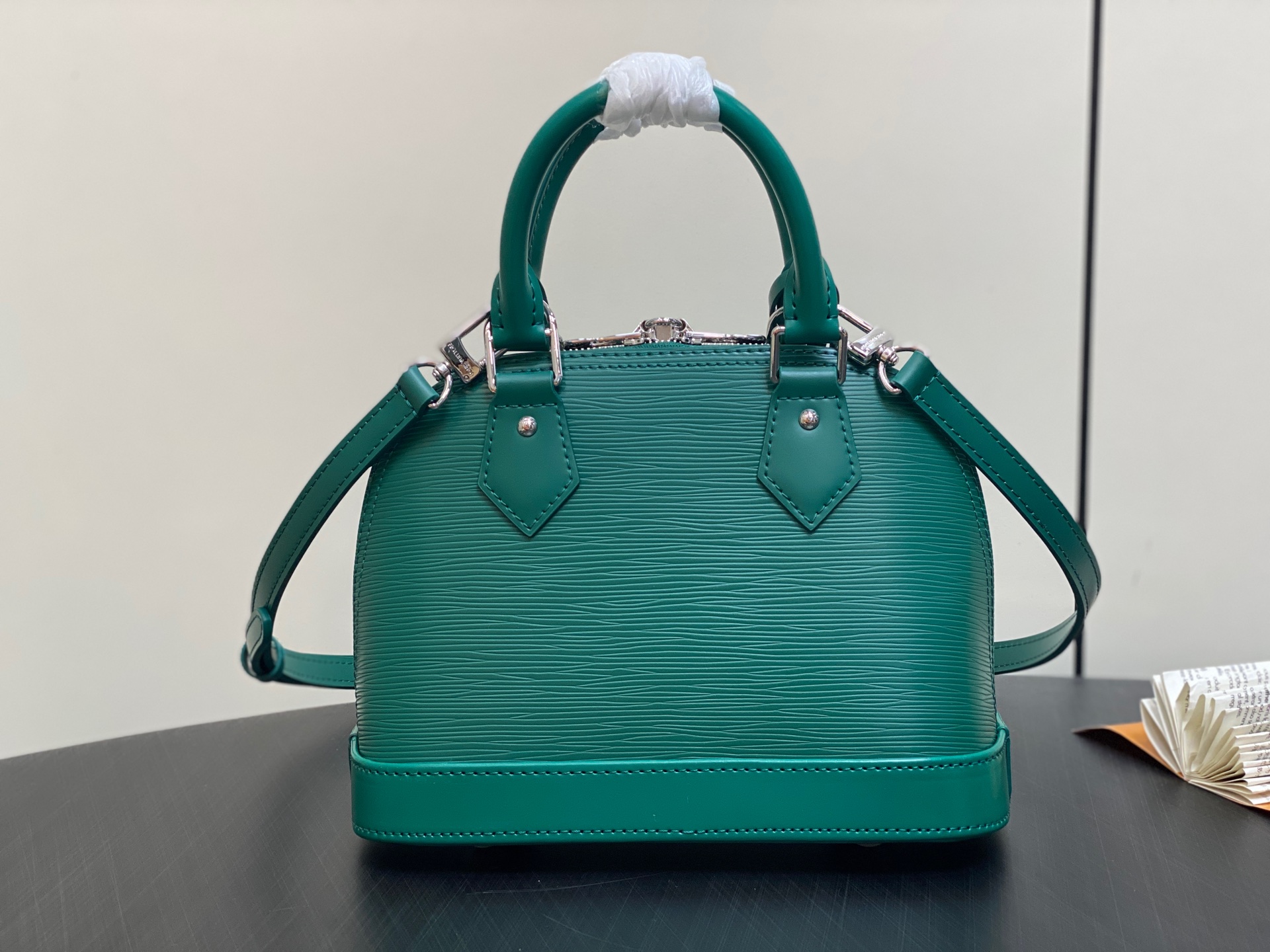 Drawing on the original design from 1934, this striking version of the Alma BB belongs to the Heritage Colors collection. The grained Epi leather makes a bold contrast against the smooth cowhide trim, which are both offset with sleek silver-toned hardware, including a signature padlock. Wear it cross-body using the removable strap or carry it by hand.