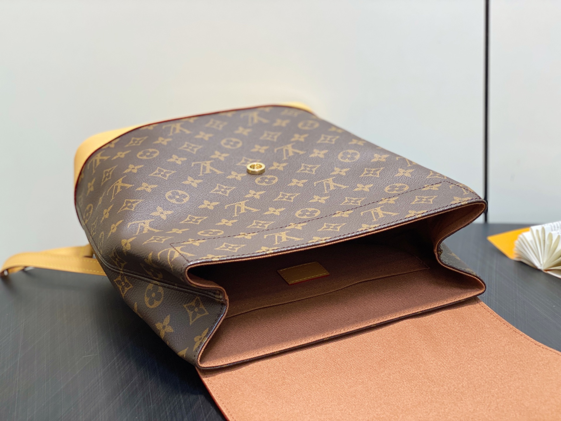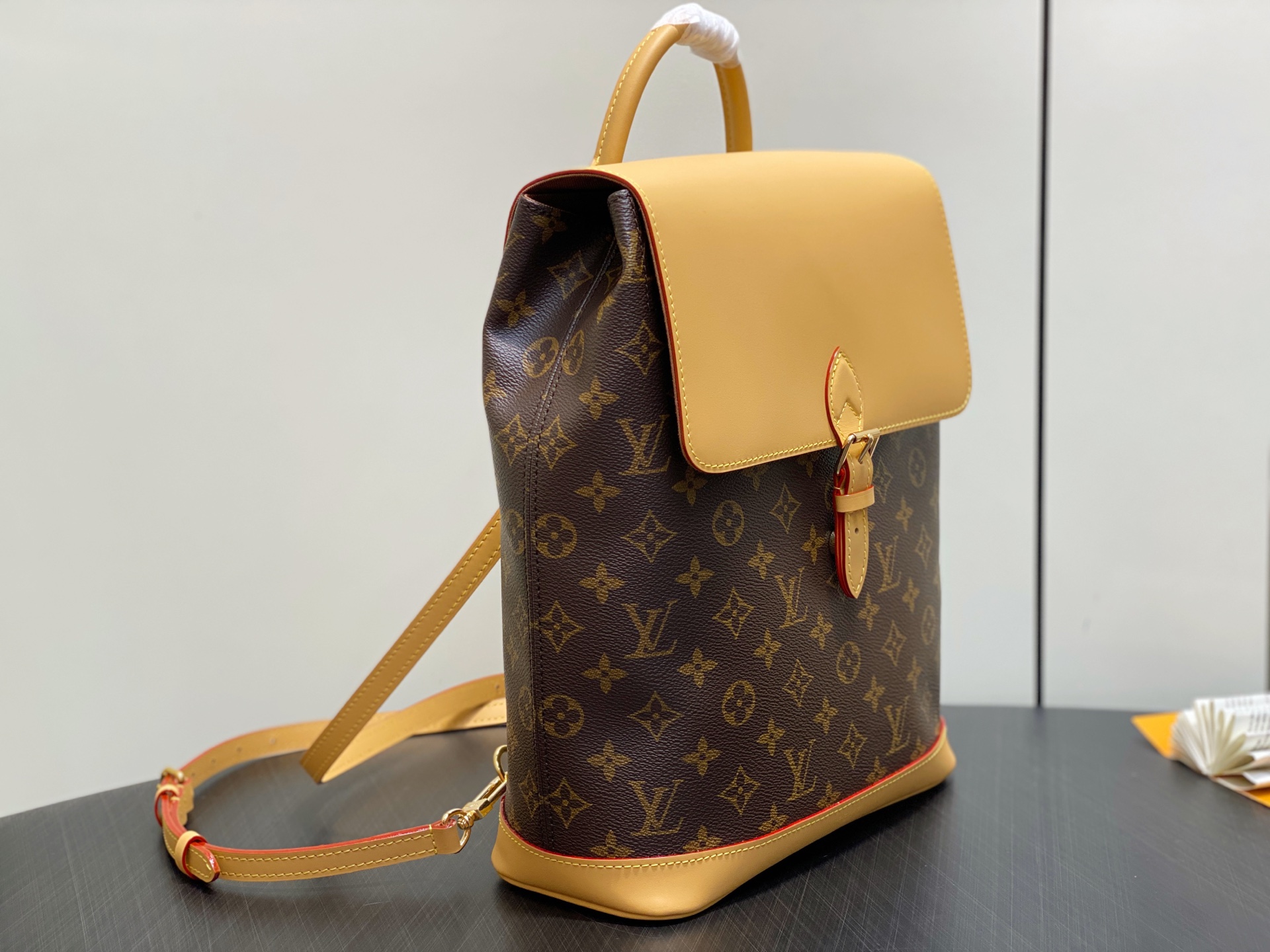 Meet the Soho MM, a versatile backpack that is inspired by the Arlequin model from 1996. Ideal for both everyday and travelling, it pays tribute to the House’s trunk-making heritage with natural cowhide leather trims and a vintage-effect buckle. The leather strap is removable and adjustable, and can be attached multiple ways thanks to five D-rings.