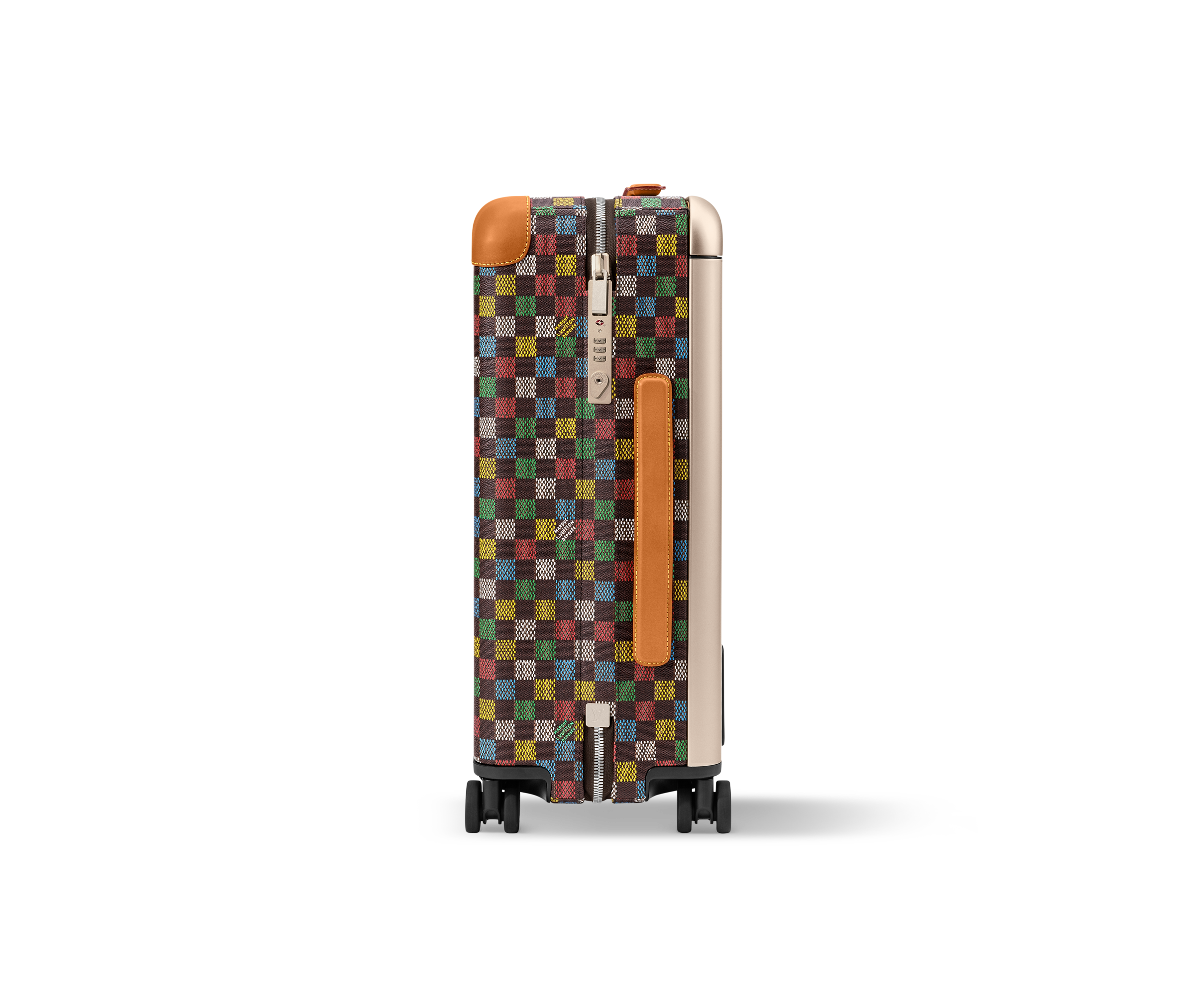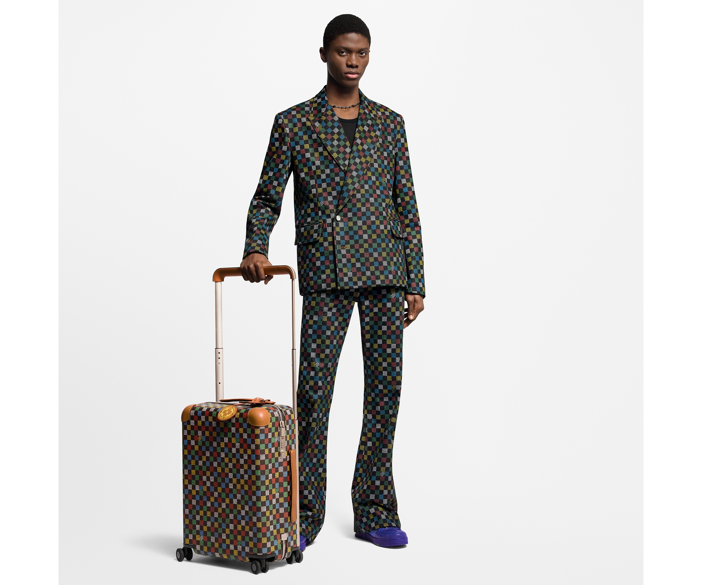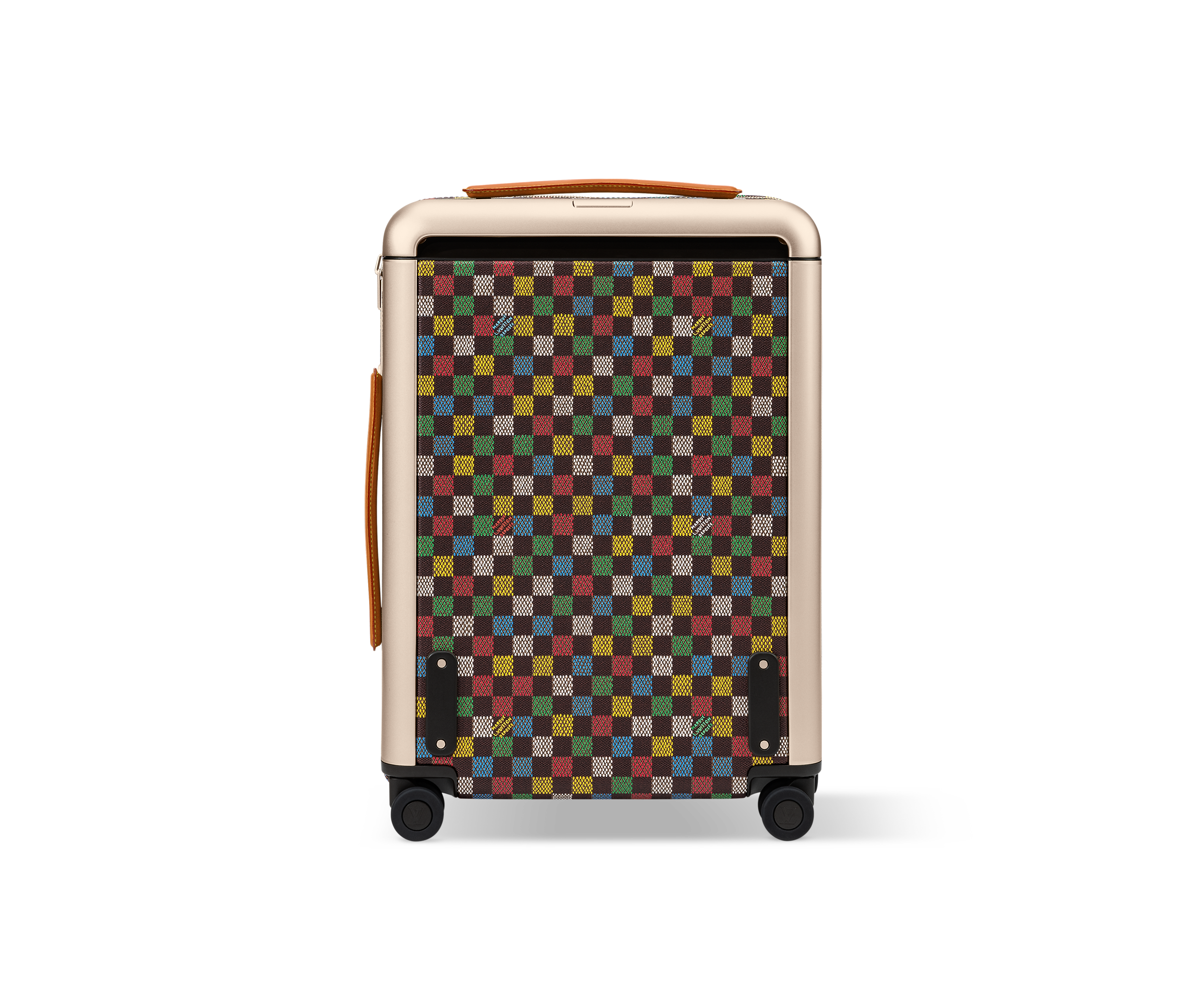 Blending the past with the present, Pharrell Williams crafts this Horizon 55 rolling suitcase from his LV Vers Damier Ebene canvas. Starting with the House’s original black-and-brown Damier Ebene motif, multicolored checks with a hand-painted feel are printed on top. The cowhide leather on the reinforced corners, top handle, and cane handle anchor the design.
