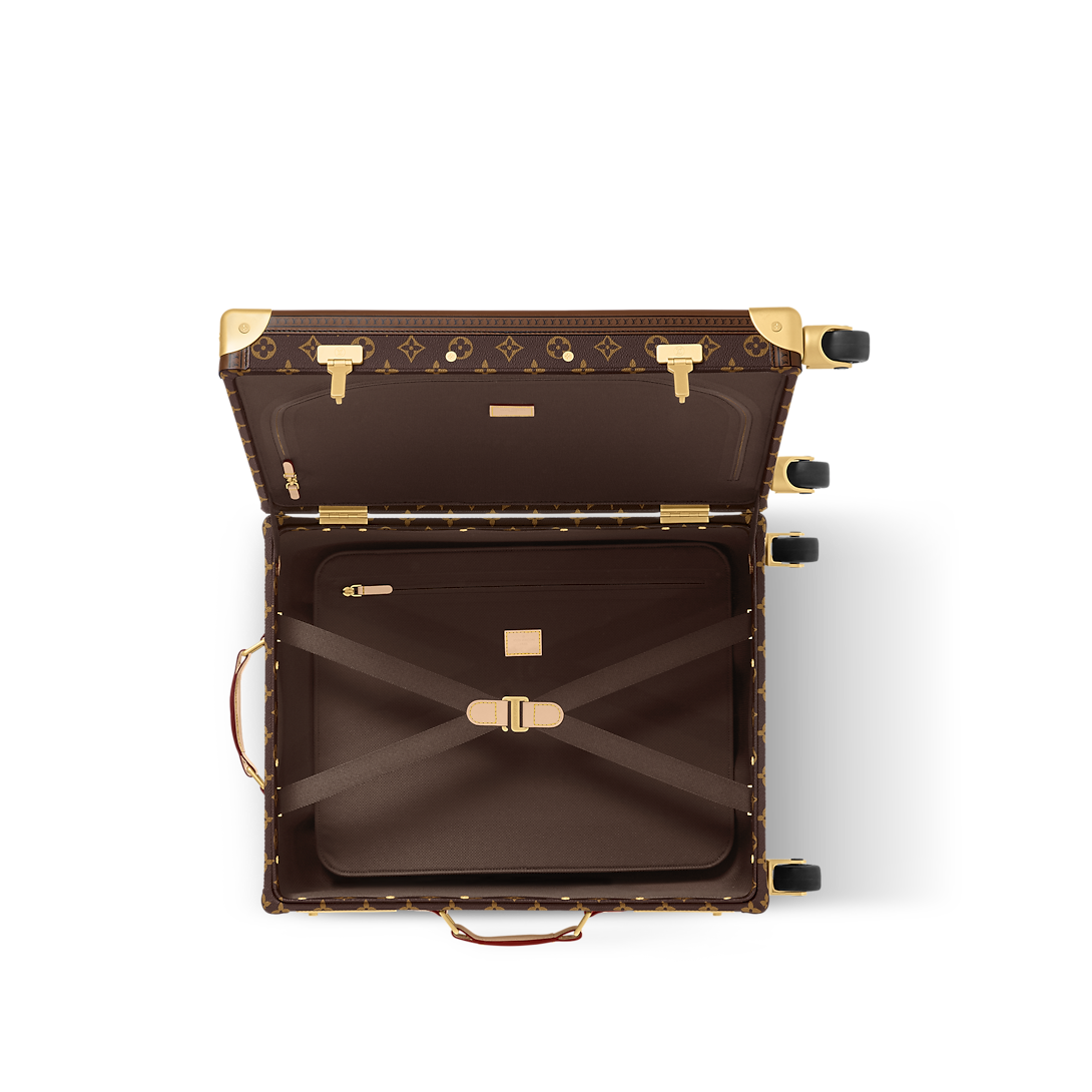 With its reinforced corners, wooden slats, and rivets, the Rolling Trunk luggage in Monogram canvas and leather is a direct descendent of the House’s historic trunks. Two combination locks make this case even more secure while the cleverly designed main compartment features a zipped pocket and a removable divider.