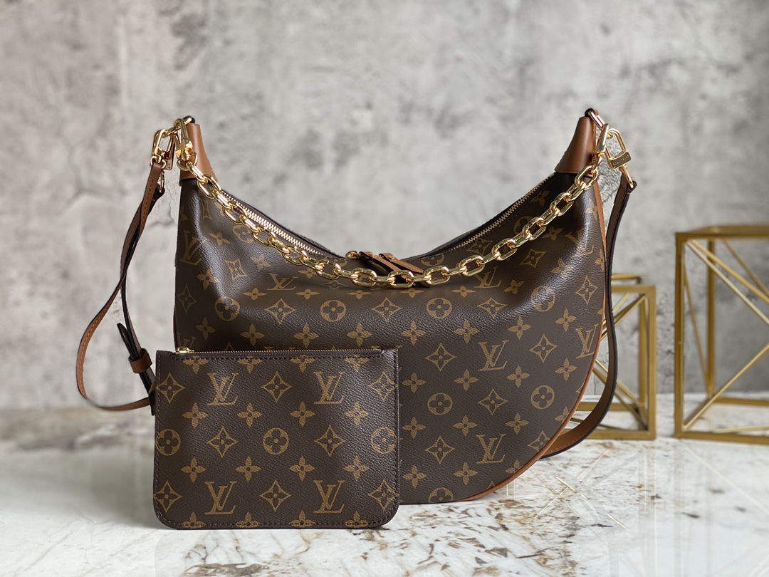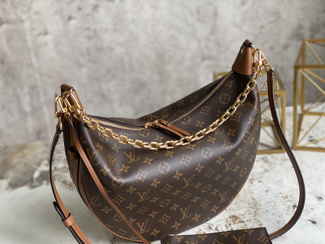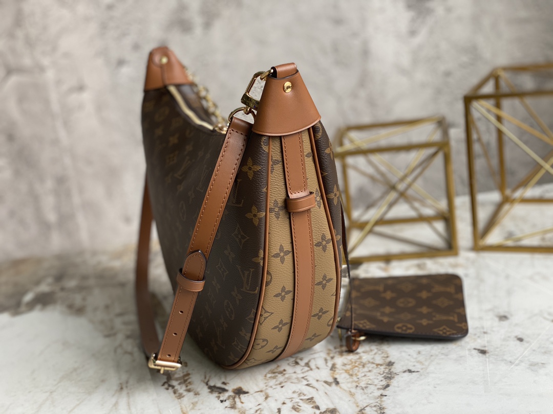 A supple and roomy bag, the Loop Hobo bag is made from a mix of Monogram and Monogram Reverse coated canvas. Its on-trend half-moon shape is emphasised by the leather corners. A removable chain and removable and adjustable leather strap enable multiple carrying options.