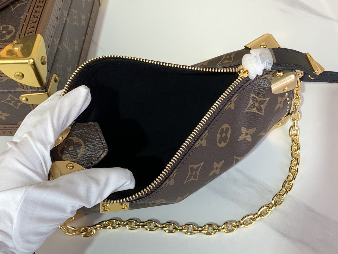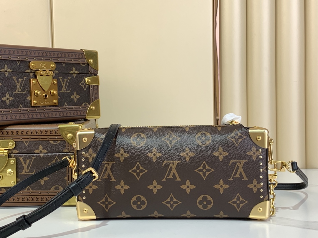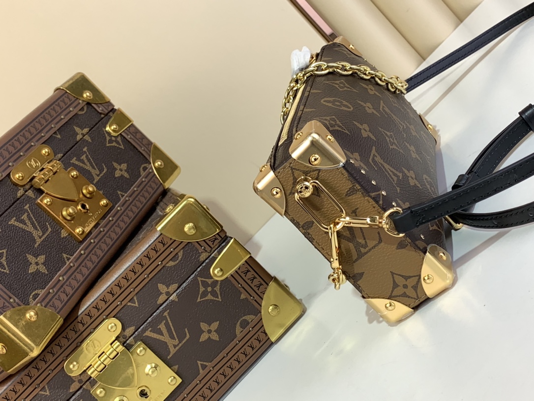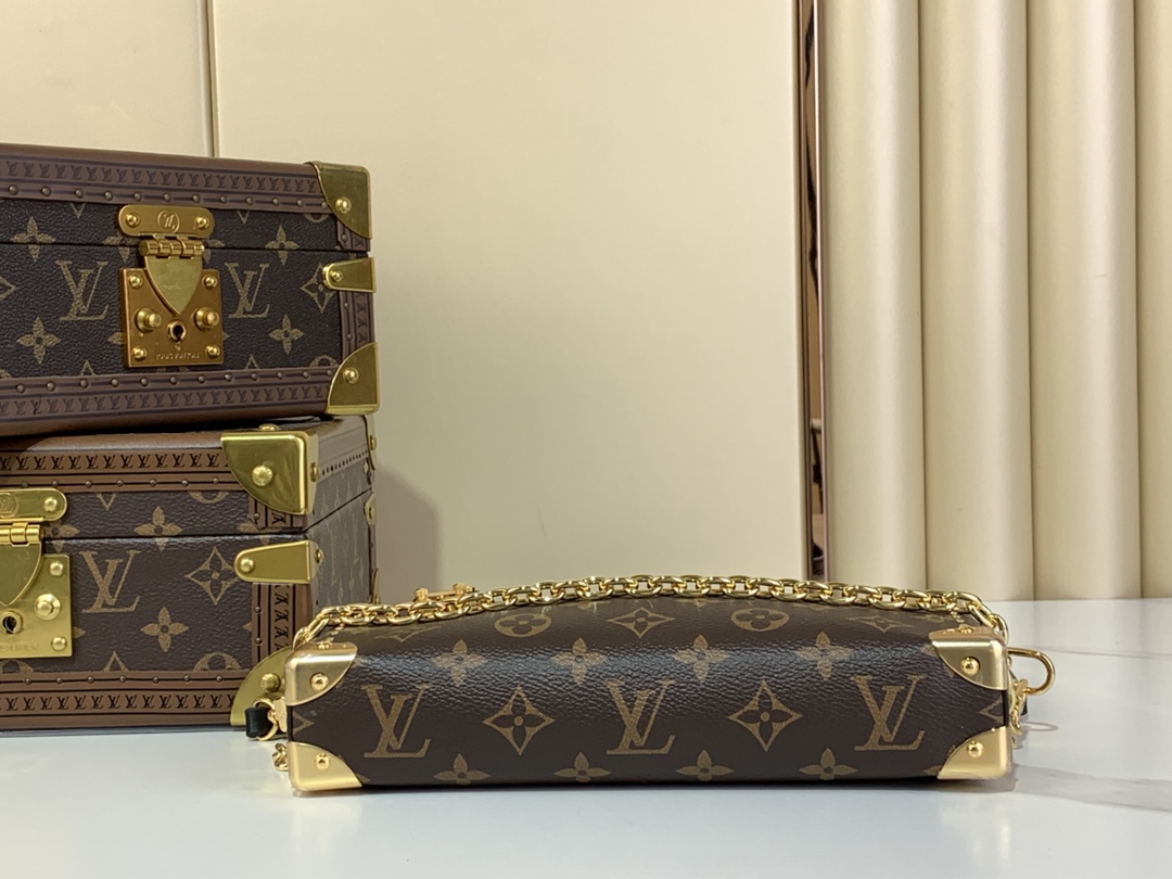 For the season, the iconic Trunk family is reinterpreted with a chic addition: the Slim Trunk. As seen on the Cruise 2025 runway, this elegant handbag showcases Nicolas Ghesquière’s signature, mixing Monogram and Monogram Reverse with smooth cowhide trims. Emblematic details, such as the gold-tone S-lock and metallic studs, highlight the rich history of the emblematic Trunk story.