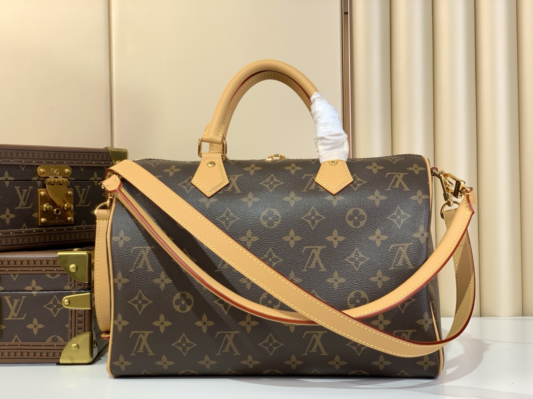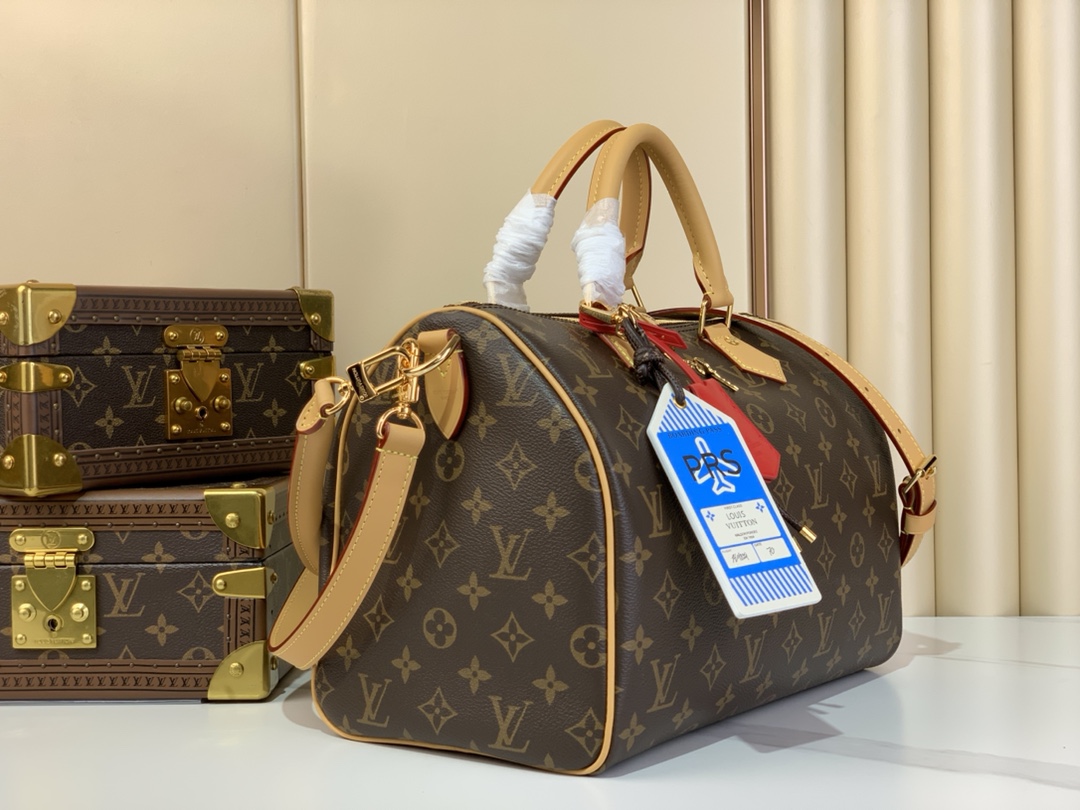 The Speedy Soft 30 Crafty is designed to make travel feel effortless and fun. Living up to its name, it is made from ultra-soft Monogram coated canvas with a striking red leather lining and matching key bell. Other features include a playful boarding pass and trunk charm, plus an internal zipped pocket to store a passport and other important items. The new shoulder Toron handle adds the final flourish.