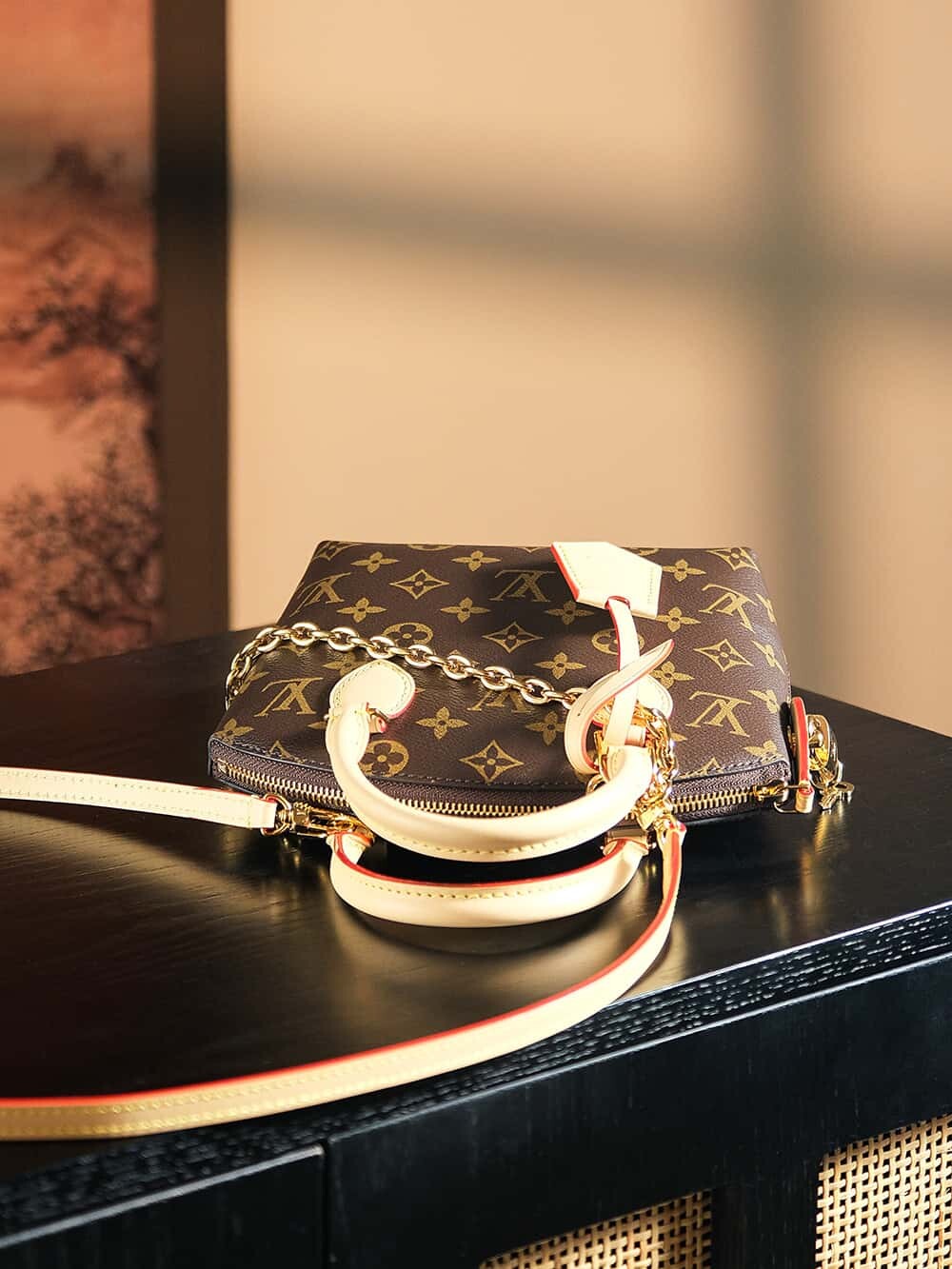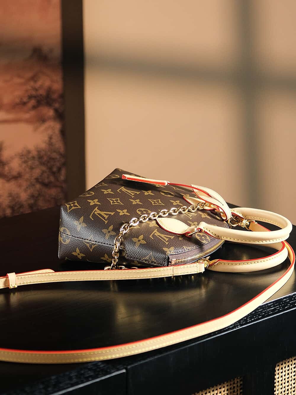 - Gold-toned hardware