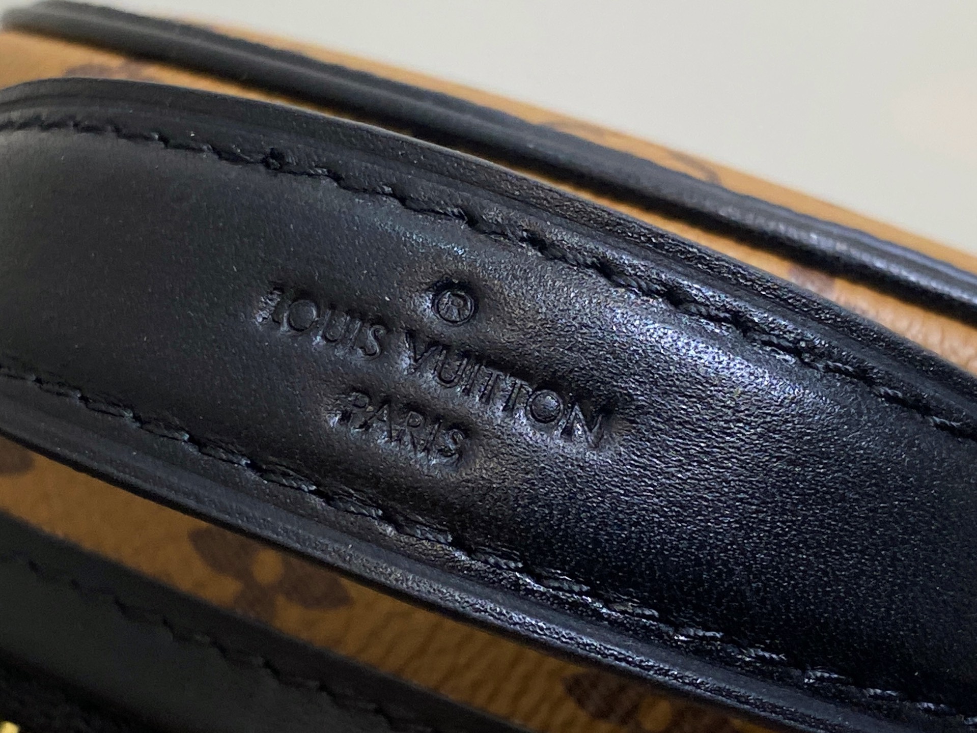 The Mini Boîte Chapeau is crafted from Monogram Reverse canvas with refined calf-leather trim. This delightful mini bag evokes Louis Vuitton's travel heritage with details such as the name tag and Malletage-pattern lining, inspired by the historic trunks. The zip closure secures a roomy gusseted compartment, while the top handle and removable, adjustable shoulder strap offer different carry options.