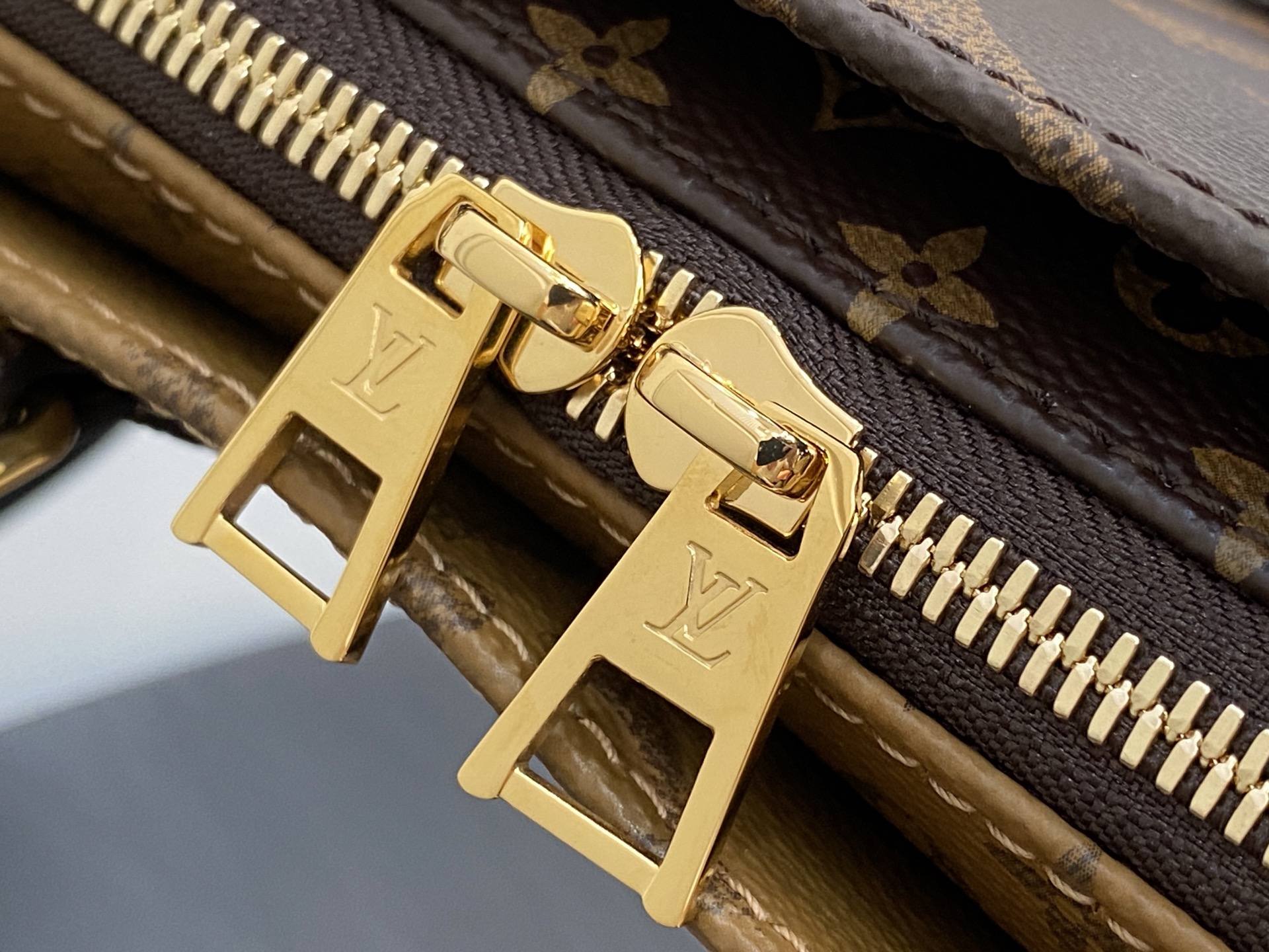 Showcasing the House’s Monogram Giant signature, this OnTheGo East West is a sophisticated everyday choice. Crafted from coated canvas, it is accented with Monogram Reverse coated canvas trims and gold-toned hardware. Fitted with two handles, a removable and adjustable strap, and a removable chain, the versatile design can be worn in a variety of ways and includes multiple compartments and pockets to keep valuables organized.