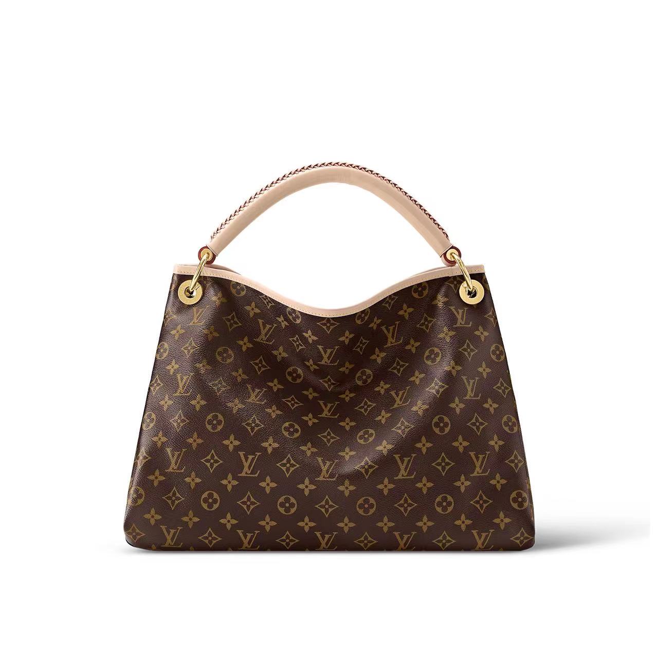 The Artsy MM embodies understated bohemian style. L's iconic and divinely supple Monogram canvas is enhanced by rich golden color metallic pieces and an exquisite handcrafted leather handle.