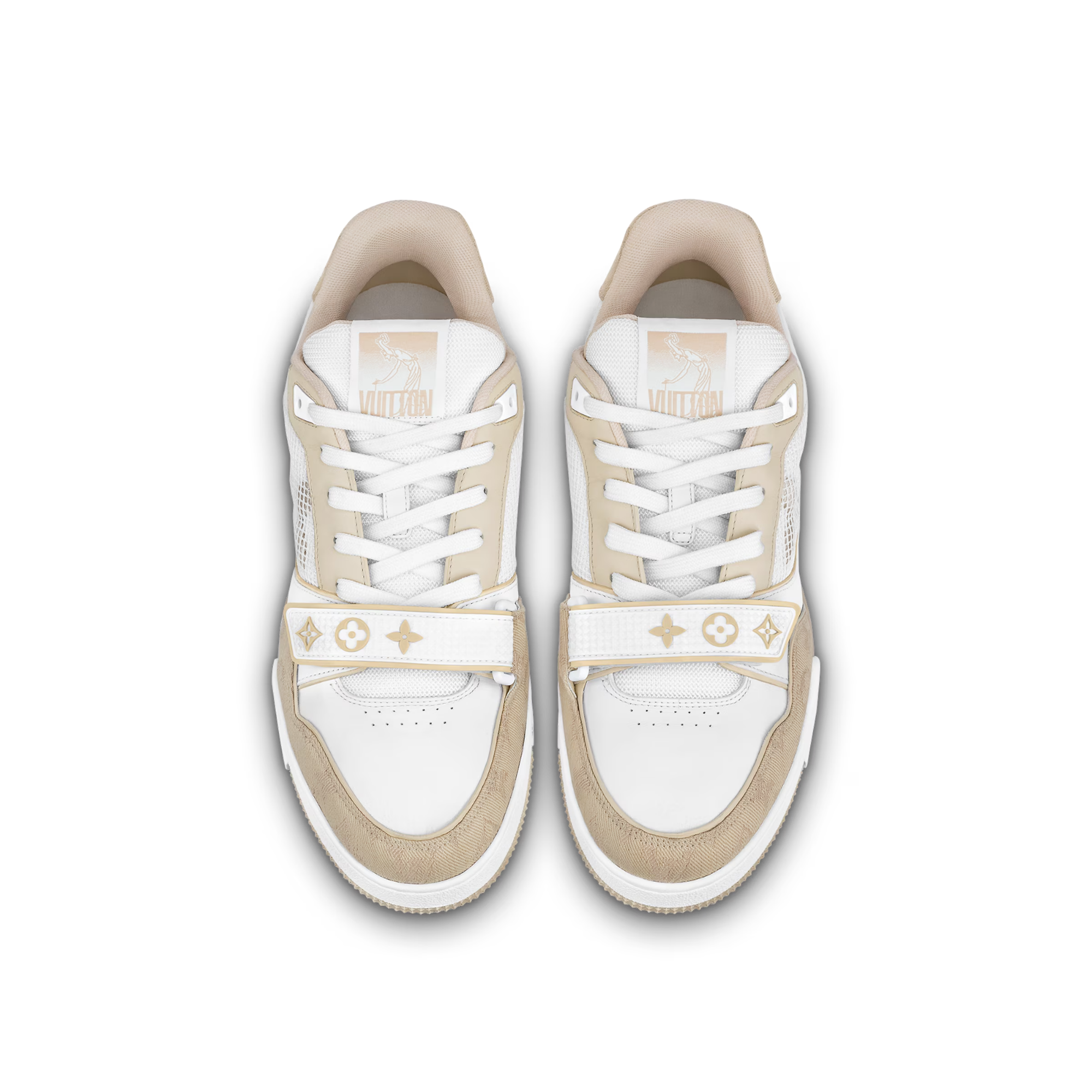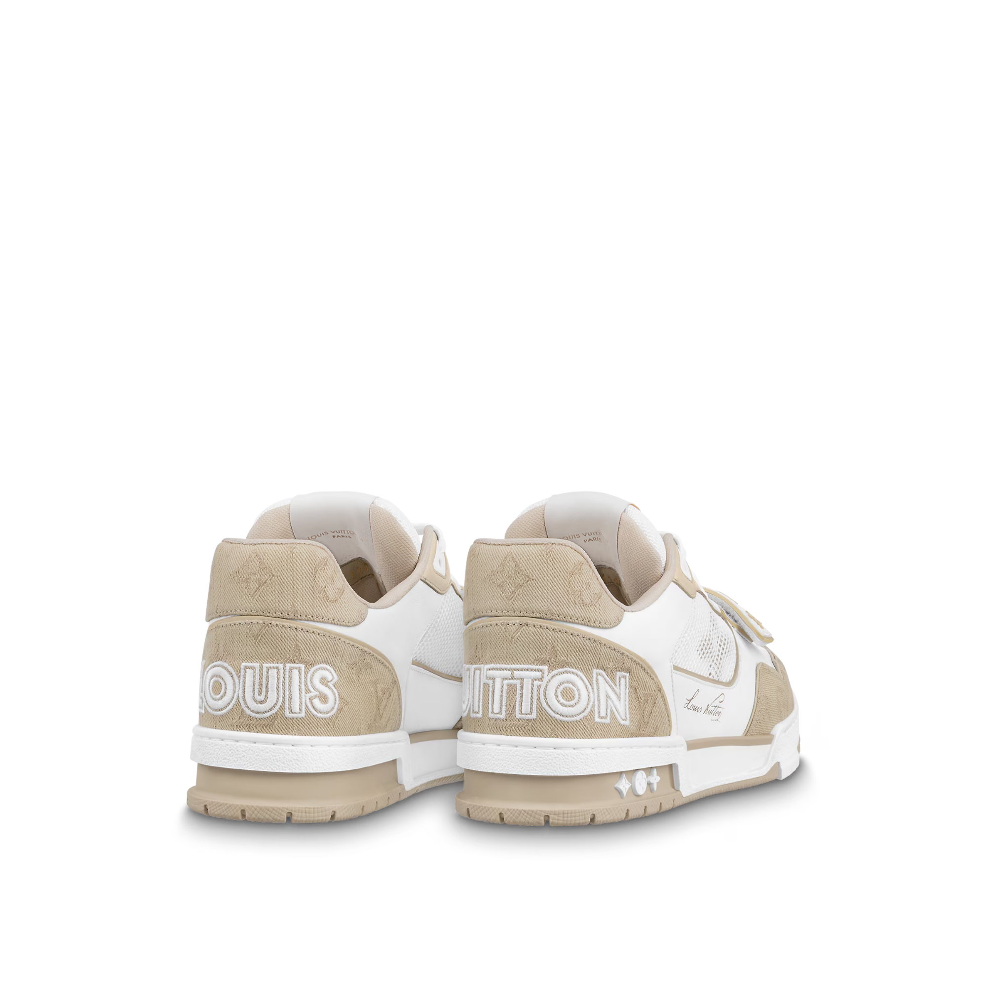 Virgil Abloh draws inspiration from retro basketball shoes and presents the LV Trainer sneaker for Louis Vuitton, creating a new classic in the footwear series. The Monogram denim structure is paired with the Monogram flower Velcro shoelaces. The complex upper requires the brand's craftsmen to spend 7 hours to complete.