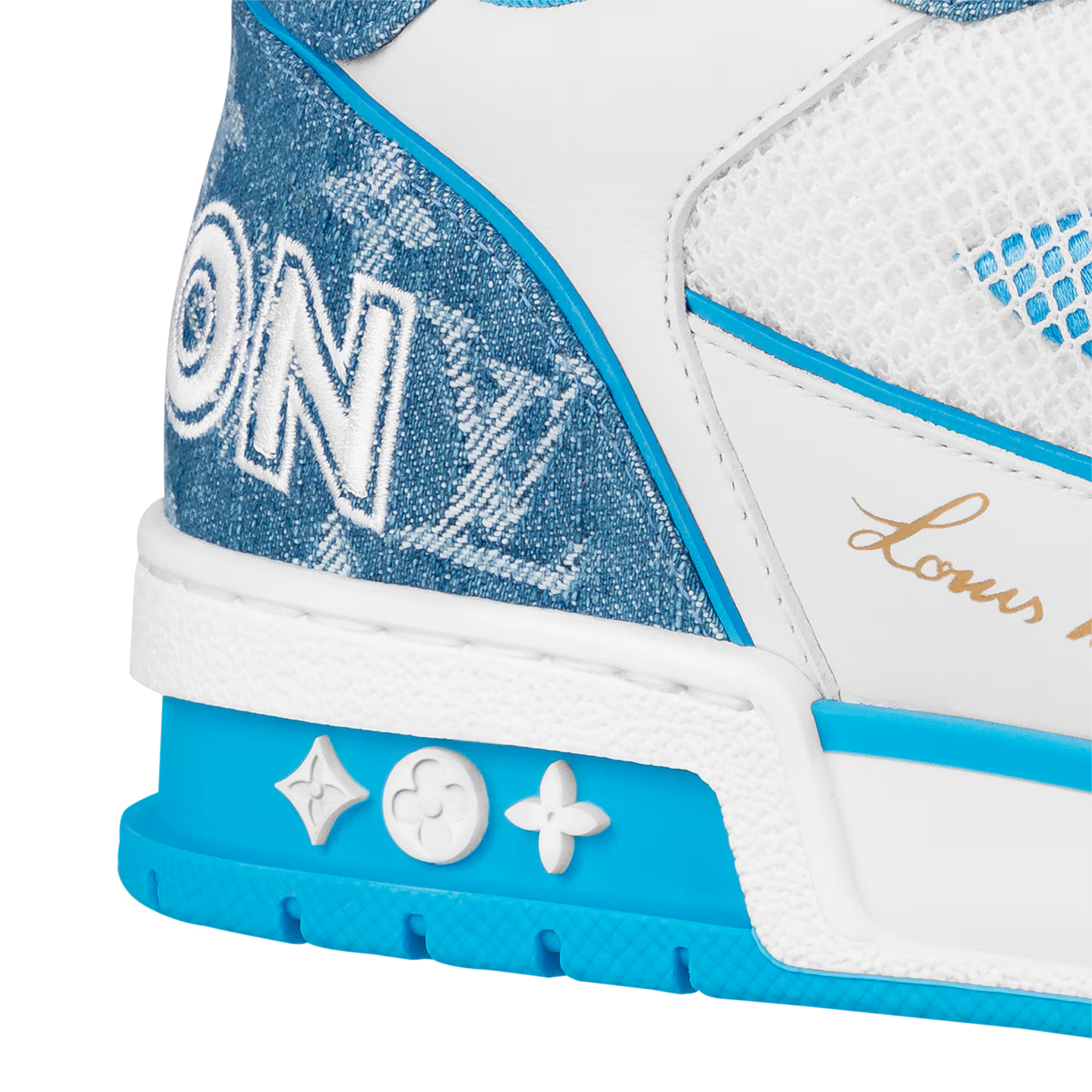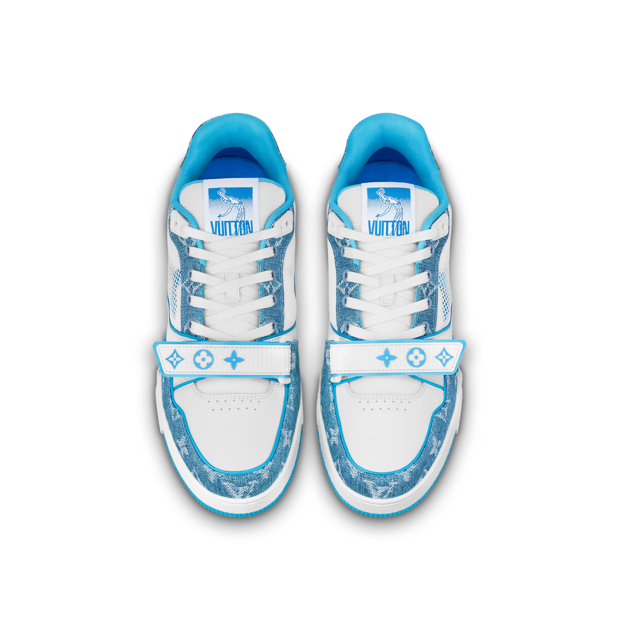 Virgil Abloh draws inspiration from retro basketball shoes and presents the LV Trainer sneaker for Louis Vuitton, creating a new classic in the footwear series. The Monogram denim structure is paired with the Monogram flower Velcro shoelaces. The complex upper requires the brand's craftsmen to spend 7 hours to complete.