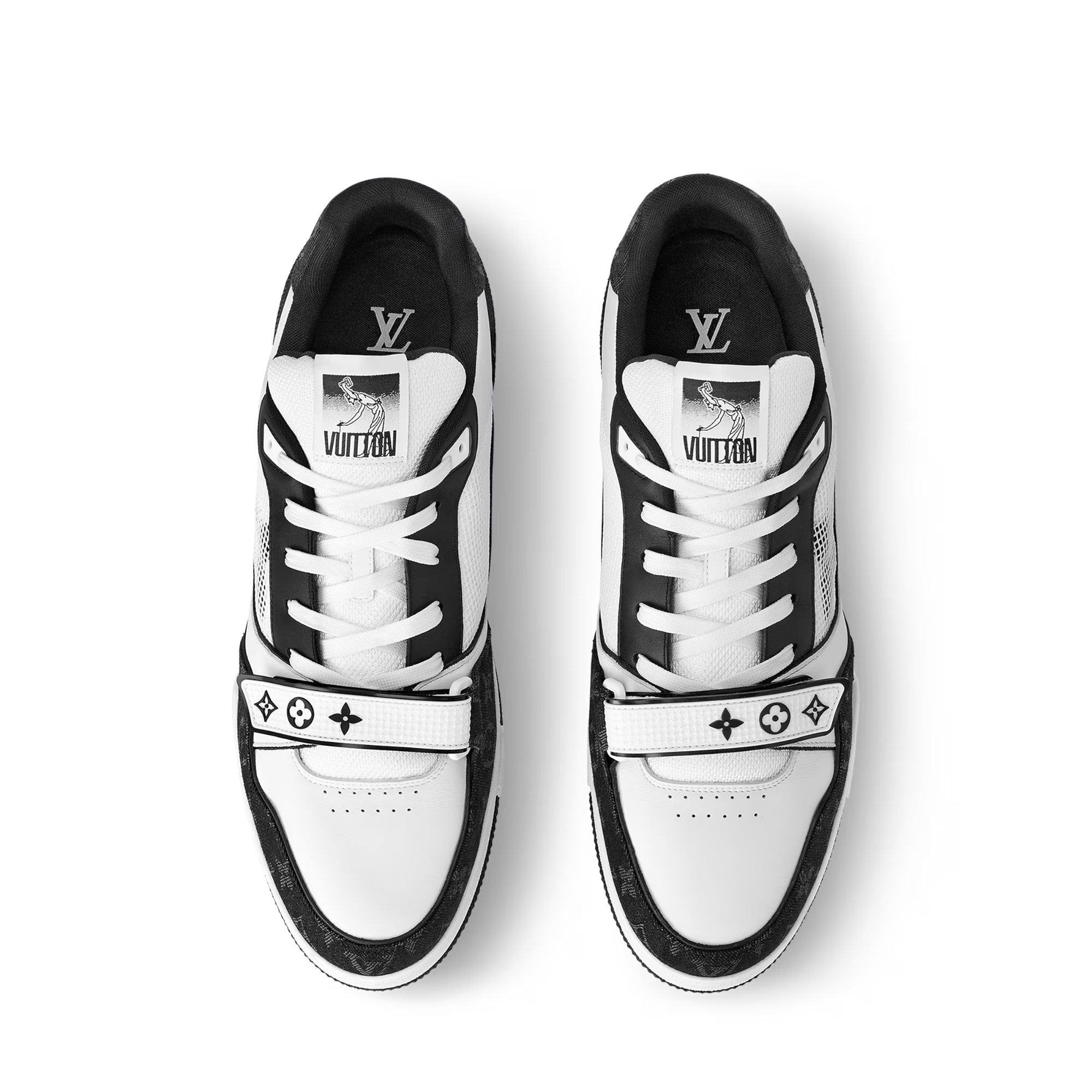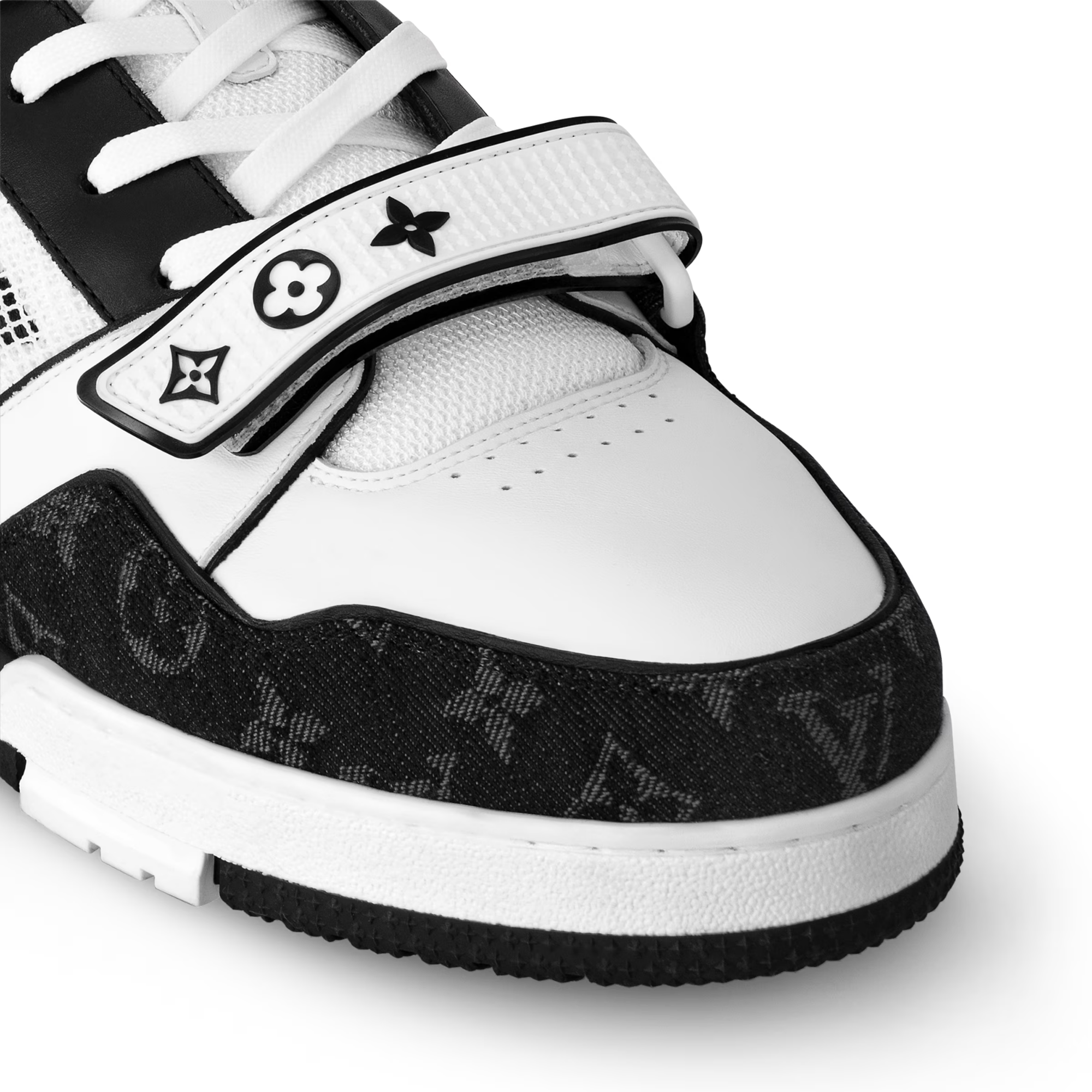Designed for Louis Vuitton by Virgil Abloh, and inspired by vintage basketball sneakers, the LV Trainer sneaker is an icon of the shoe collection. This version comes in Monogram denim and features a velcro strap with injected Monogram Flowers.