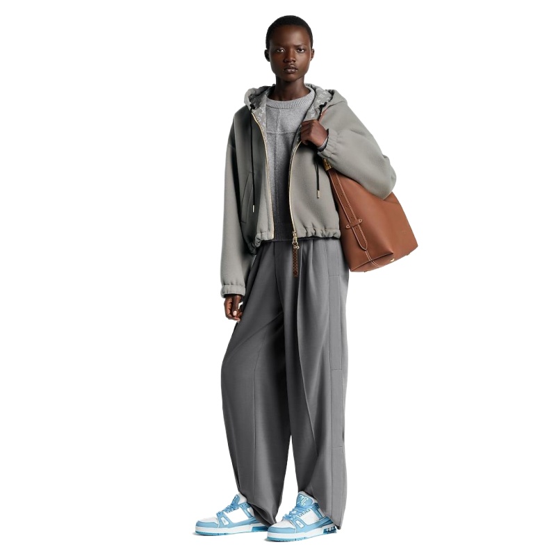 The iconic LV Trainer sneaker, originally designed for men by Virgil Abloh, is reinterpreted for women. This version comes in grained calf leather, which is partially debossed with the Monogram pattern, while its two-tone, pastel color scheme adds a feminine touch. This model is notable for its rubber signatures and technical outsole with Monogram Flowers.