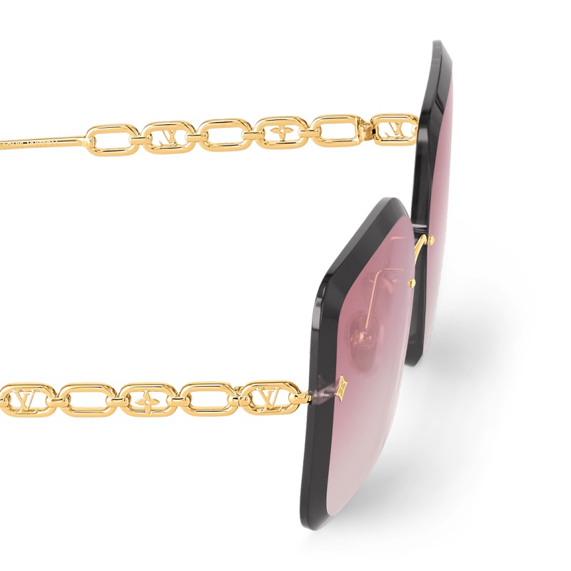 The LV Jewel Square sunglasses offer a precious, colorful signature look. Their on-trend rimless design combines delicately faceted hand-polished lenses with gold-tone metal temples in the form of chain links inset with the LV Initials and Monogram Flowers. With their outsized square shape, they add a tinge of glamour to any summer outfit.