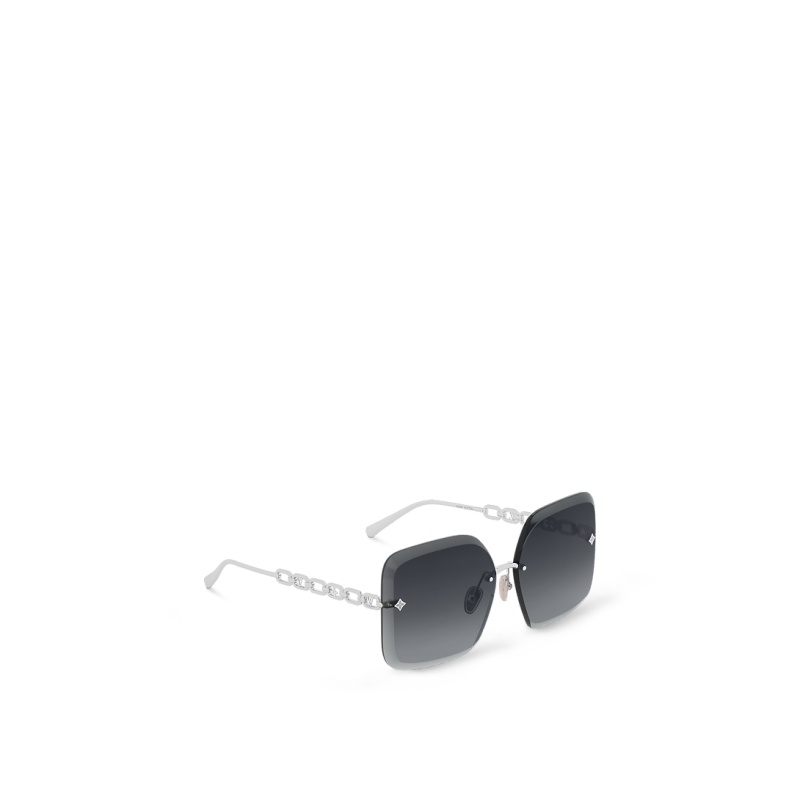 LV Jewel Square Sunglasses are balanced by rimless and faceted lenses and includes refined details such as a slender signature chain on the temples. House signatures include LV Initials and Monogram Flowers, which are embedded into the design of the chain.