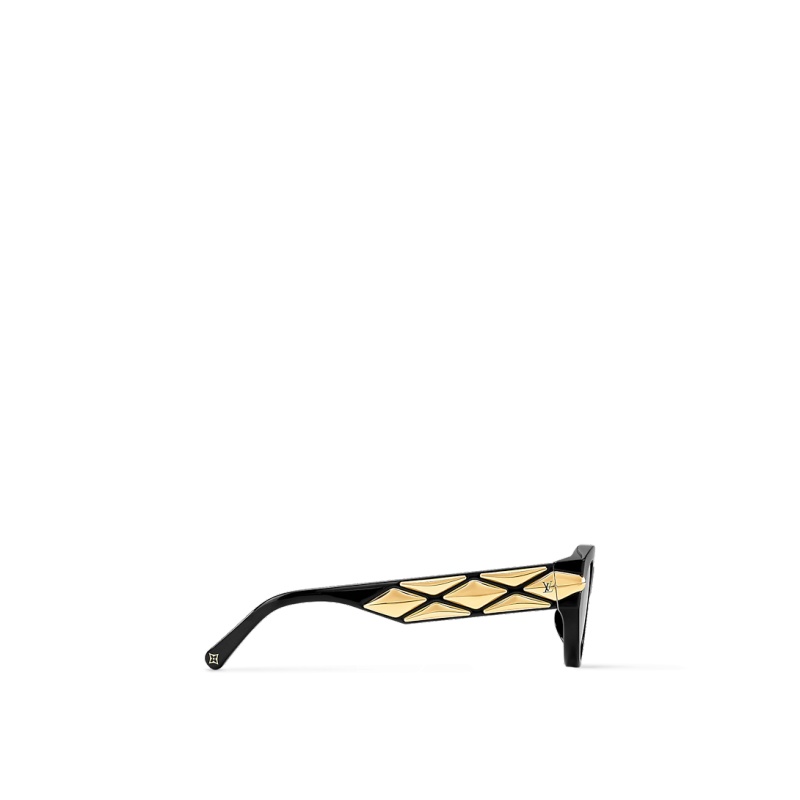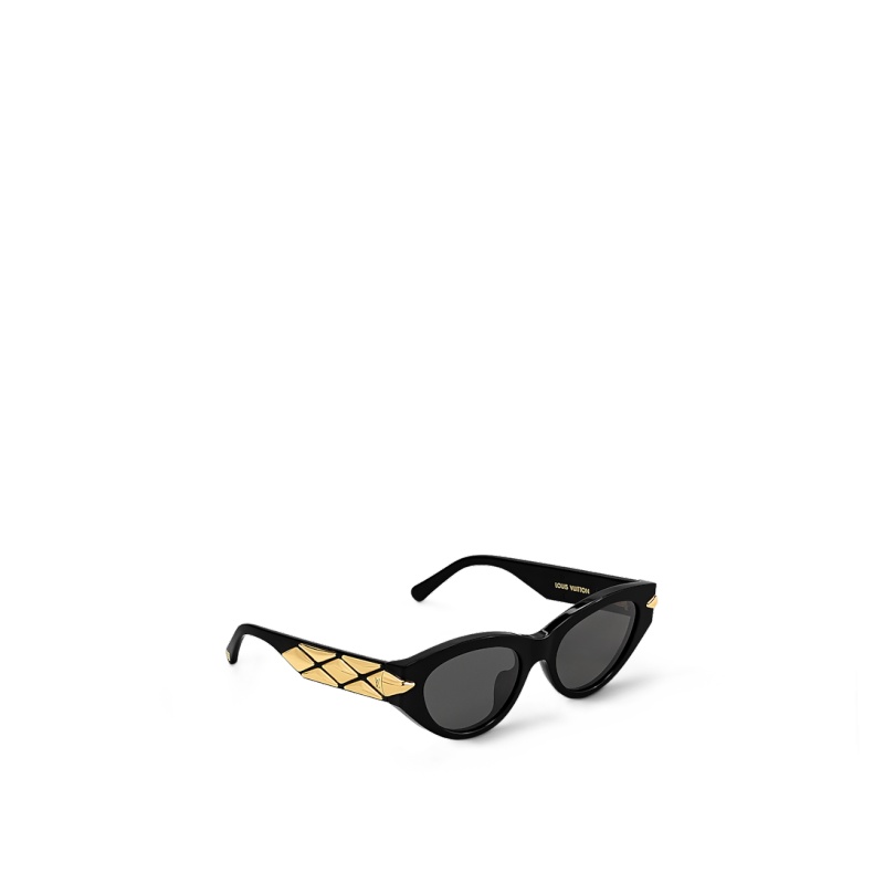 The sophisticated look of the new LV Malletage Cat Eye Sunglasses recalls the diamond pattern of the padding lining Louis Vuitton��s historic trunks. The golden metal Malletage studs on the hand-assembled temples come engraved with the LV Initials for a refined signature touch. With their classic feminine shape, these sunglasses are flattering to the face and easy on the eyes.