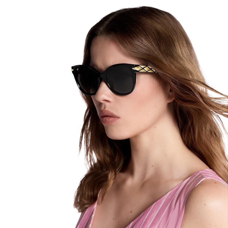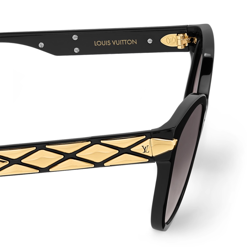 Gold-finish diamond-shaped studs, inspired by the quilted linings of Louis Vuitton��s historic luggage, give the LV Malletage Light Round sunglasses an original House look. The first stud on each temple, engraved with the LV Initials, curves around the end piece for a subtle frontal signature. An opulent effect, combined with a timeless round shape that flatters every face.