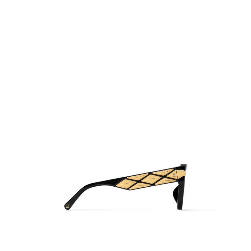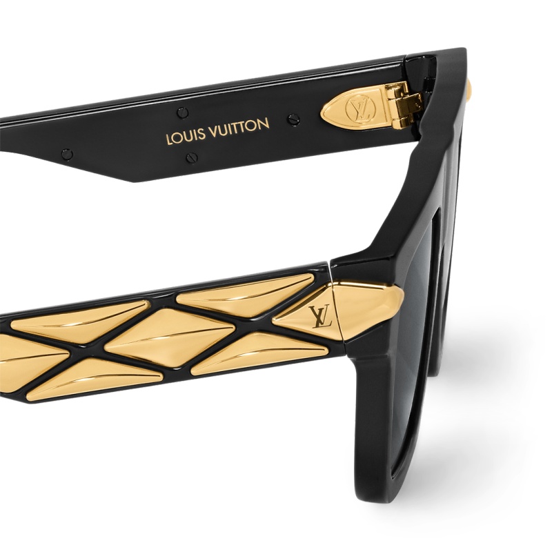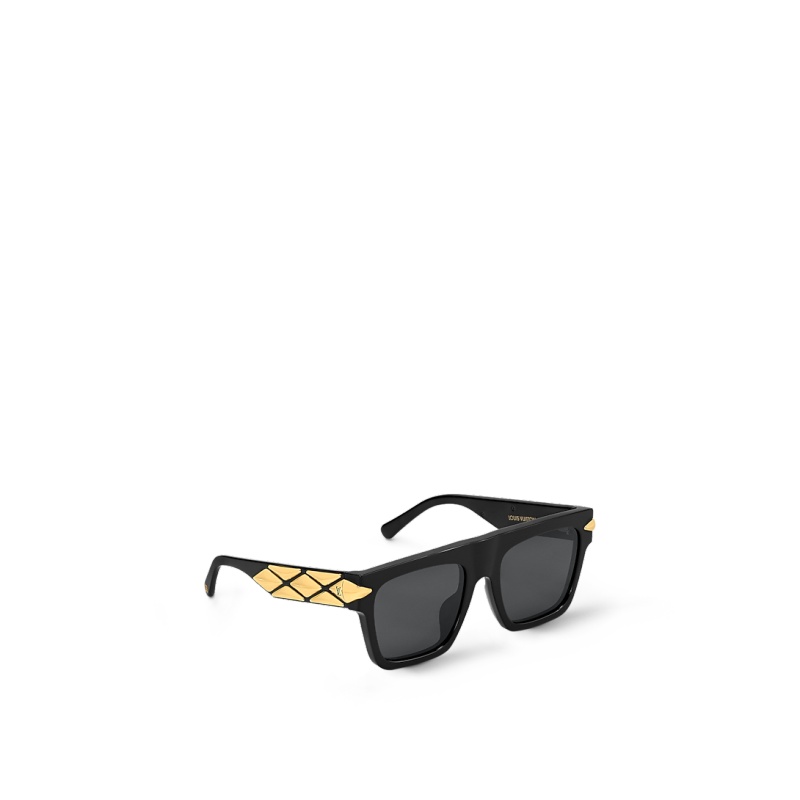 The sophisticated look of the new LV Malletage Square Sunglasses recalls the diamond pattern of the padding lining Louis Vuitton��s historic trunks. The golden metal Malletage studs on the hand-assembled temples come engraved with the LV Initials for a refined signature touch. With their bold shape, these sunglasses are a true fashion statement.