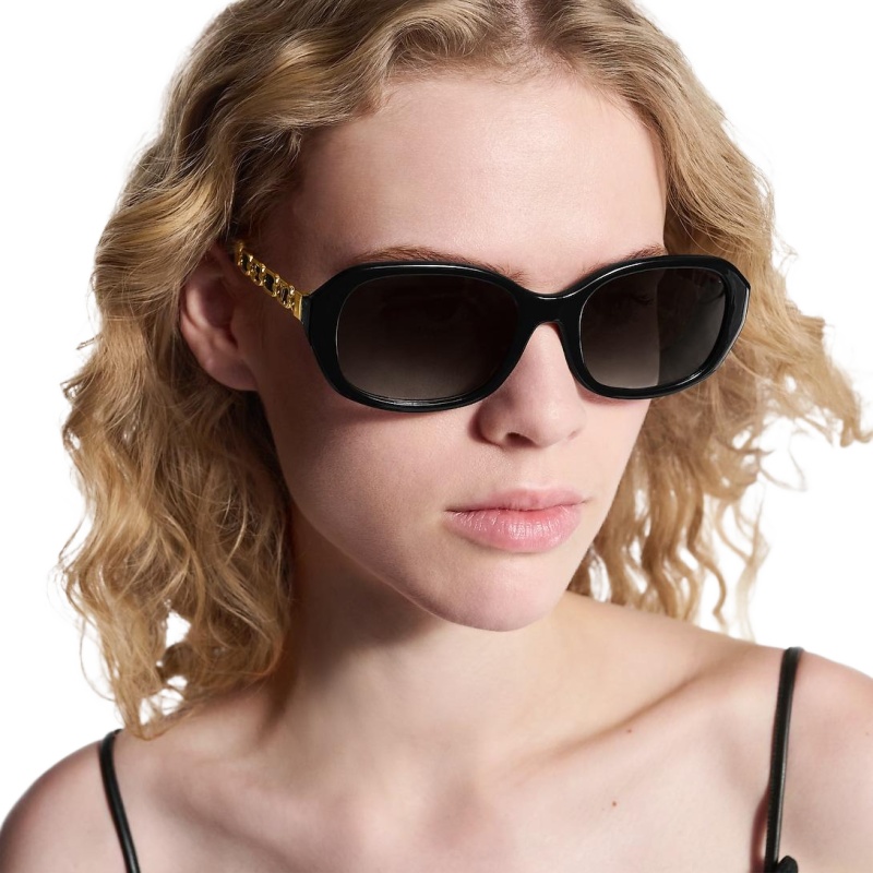 The striking design of the My LV Chain Braided Maxi Oval sunglasses expresses a bold and original fashion statement. The frame features chain temples in bright gold-toned metal enriched with iconic Monogram elements and leather inserts for a distinctive signature touch. A refined accessory, and a tribute to the House��s tradition of expert craftsmanship.