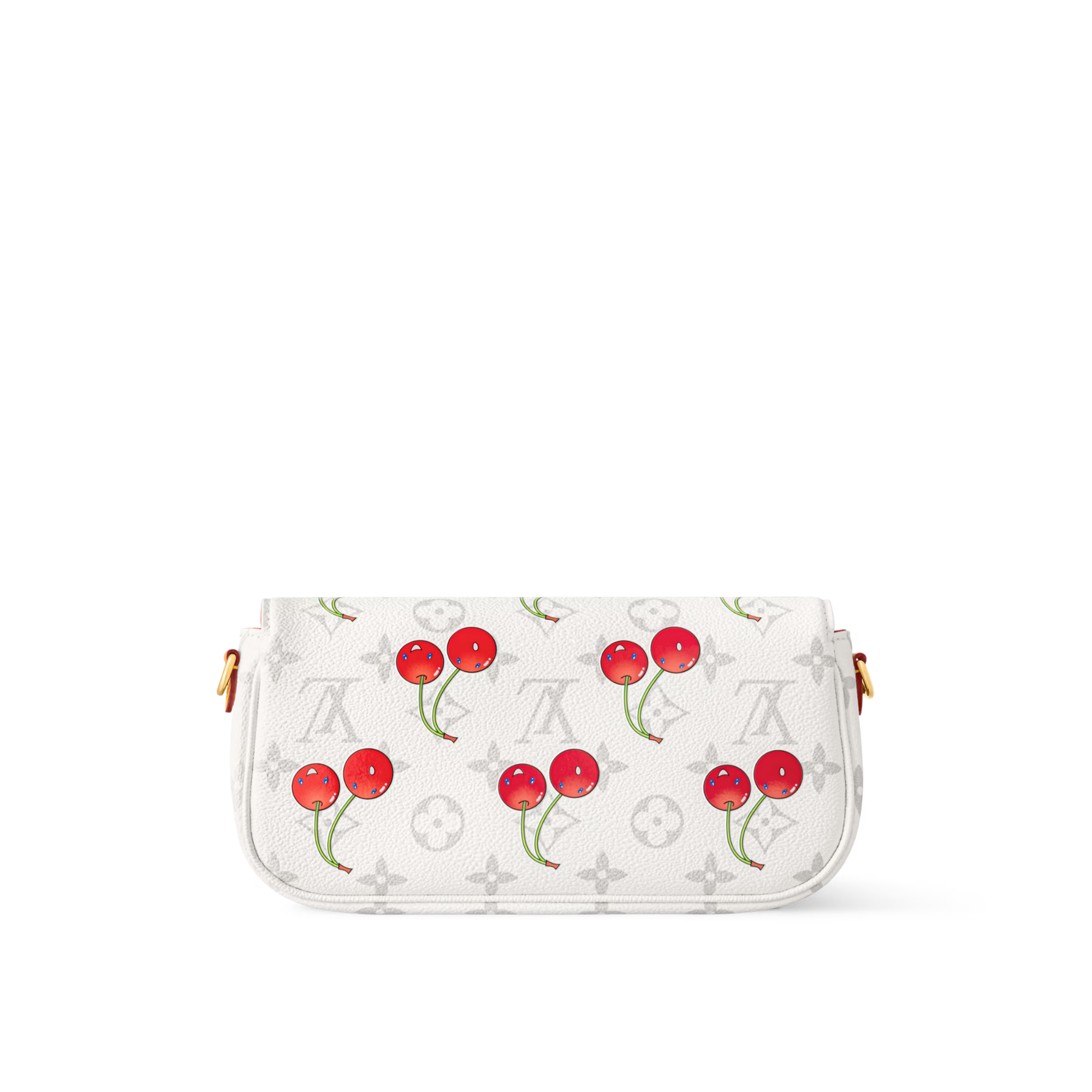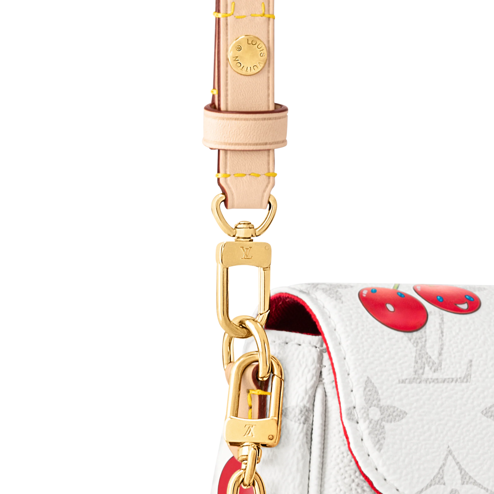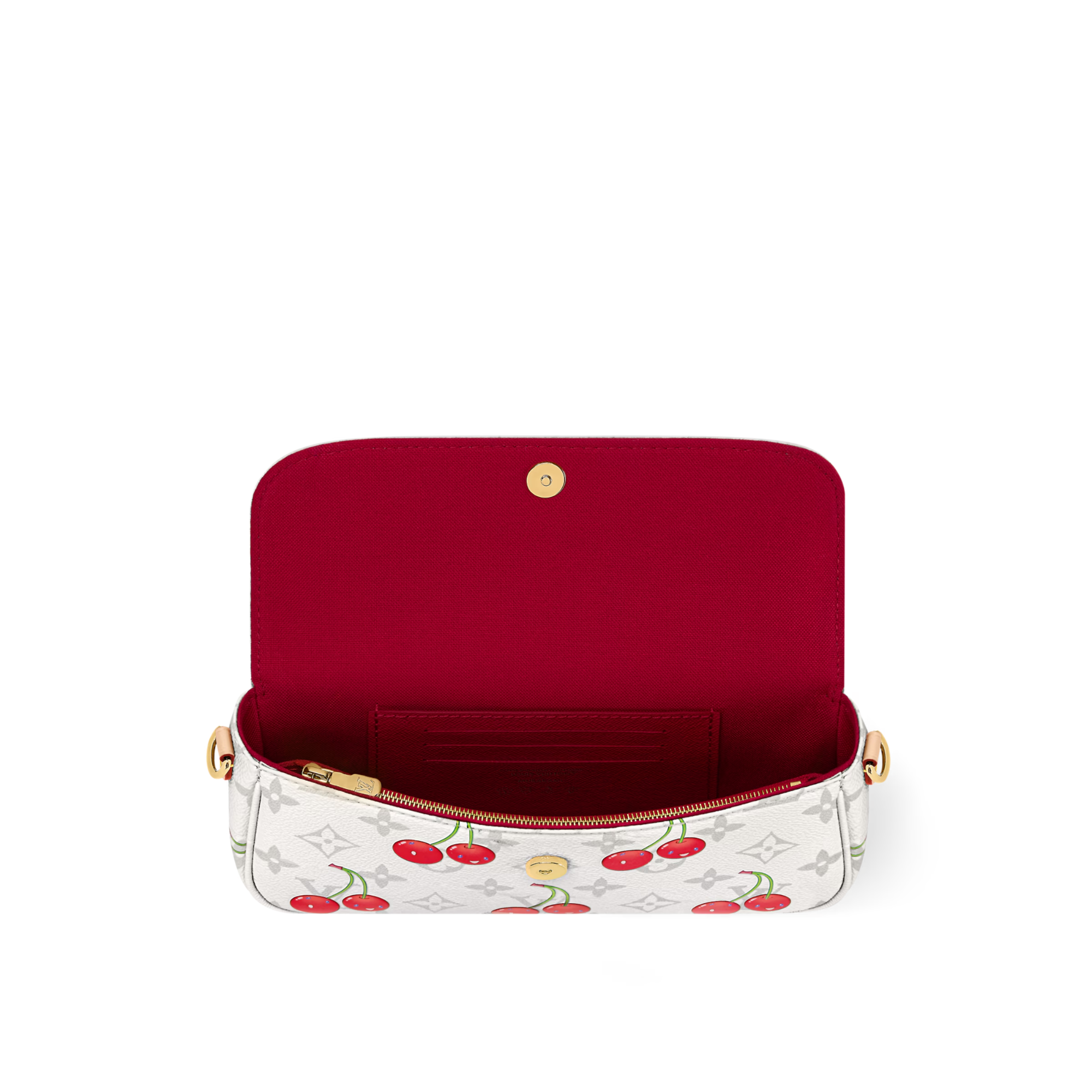 Informed by an archival 00s design, the Wallet On Chain Ivy is playfully revisited as part of the joyful re-edition of the Louis Vuitton x Murakami collection. It is crafted from Monogram canvas in an understated colorway, which is overlaid with vibrant cherry motifs in the Japanese artist’s signature kawaii style. It can be worn over the shoulder with a natural leather strap or a golden chain.