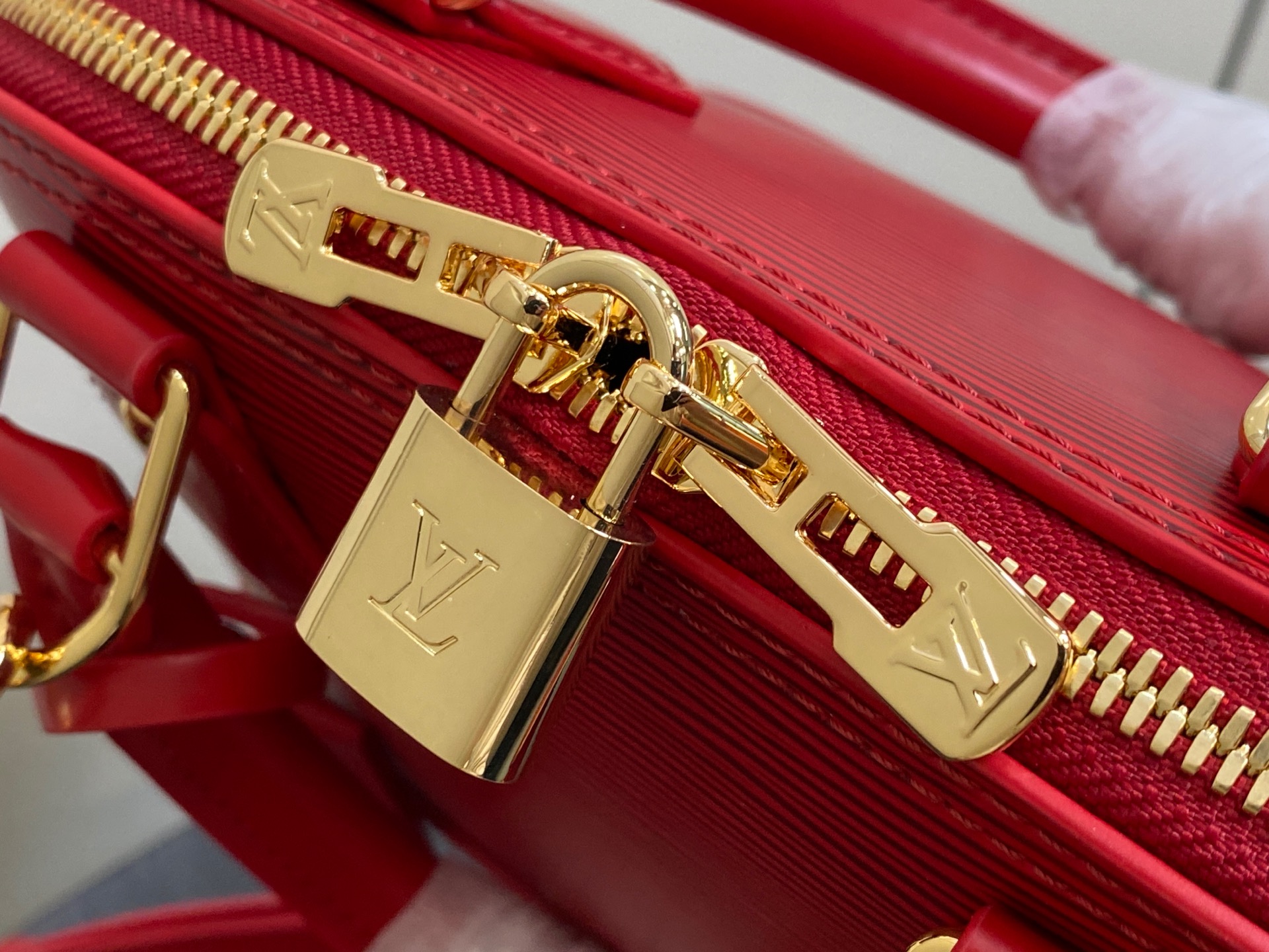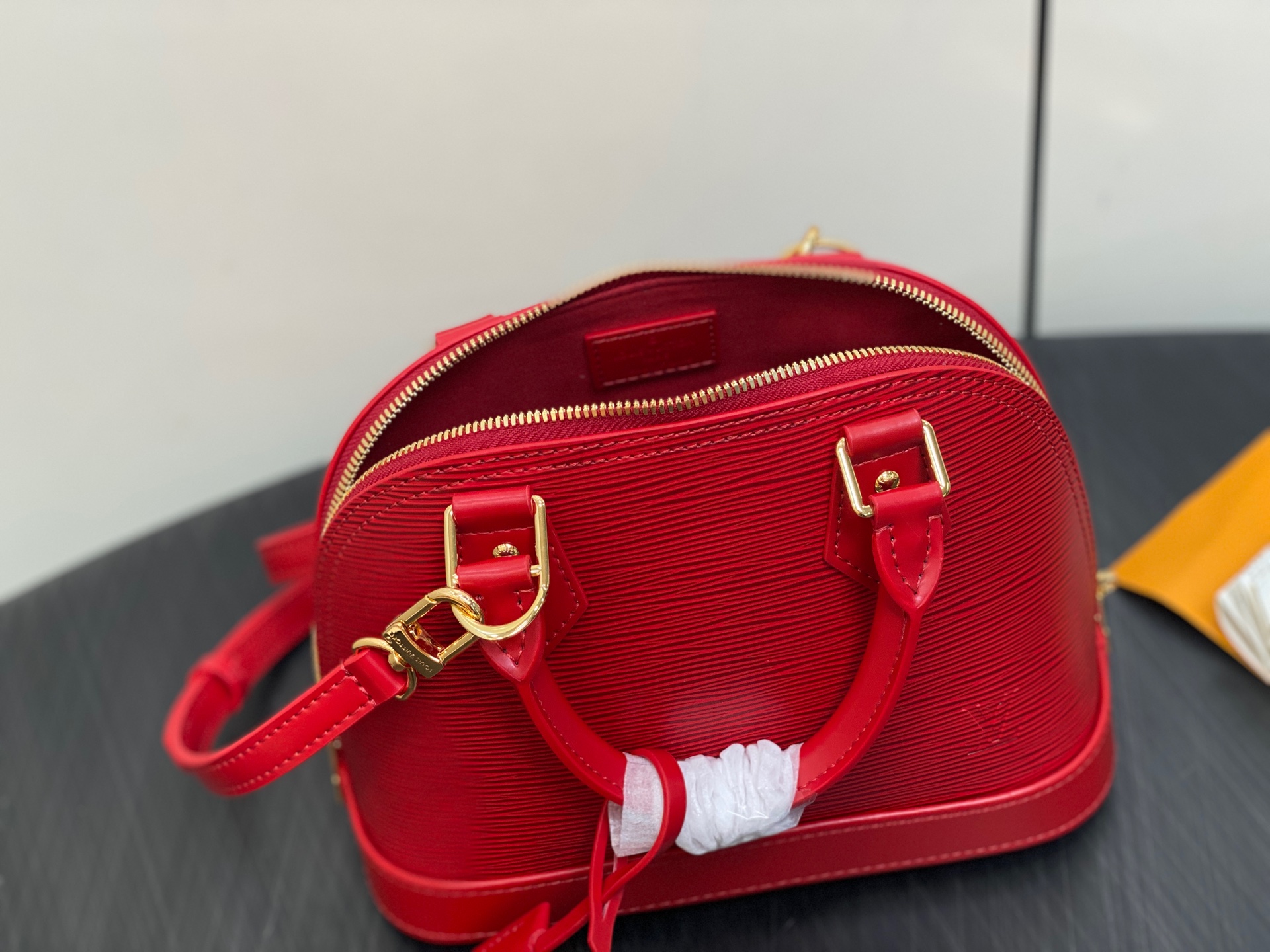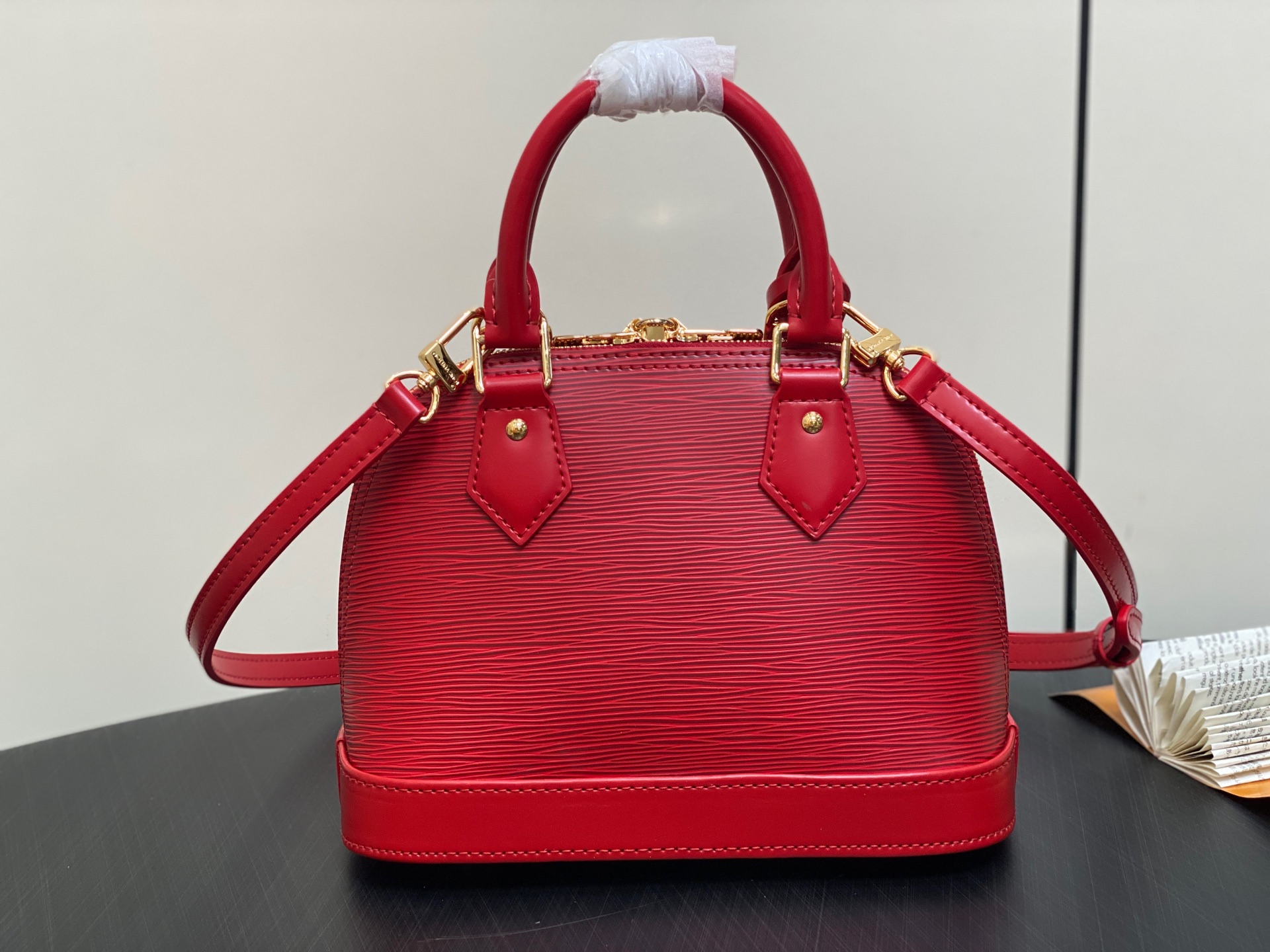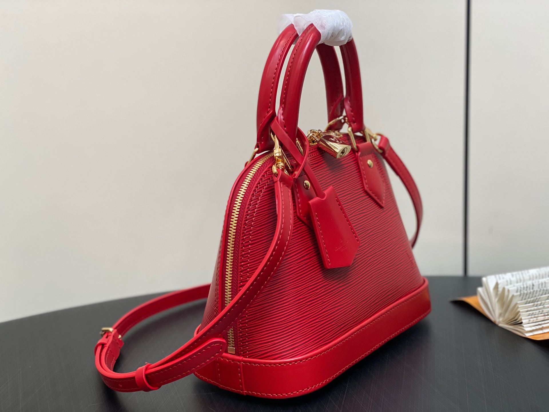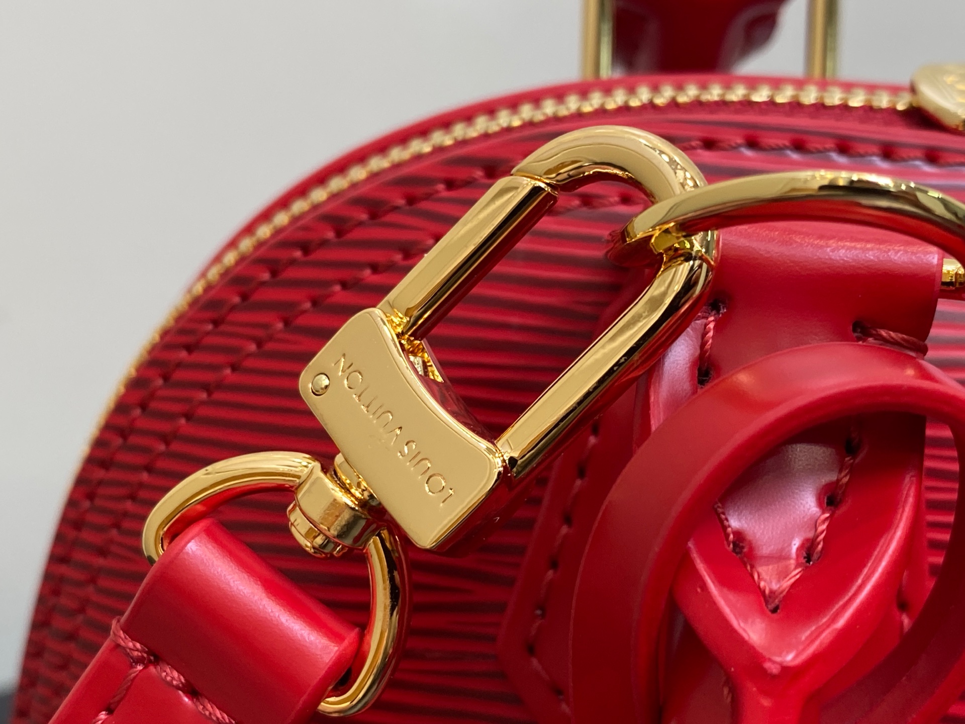 With its padlock, key bell, Art Deco shape, and articulated handles… the Alma BB is a Louis Vuitton classic. As part of the Nautical Collection, it’s fashioned from Epi leather, with its distinctive embossing, and finished with gold-color hardware. There are two top handles for hand carry and a removable and adjustable strap.