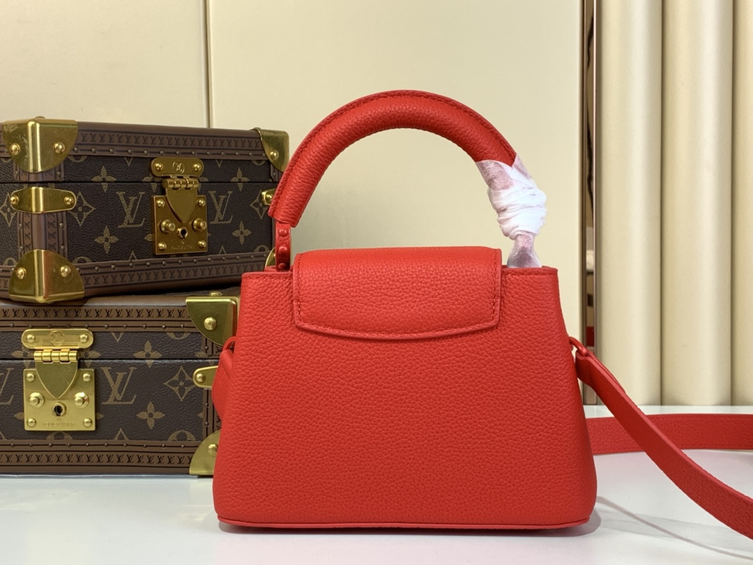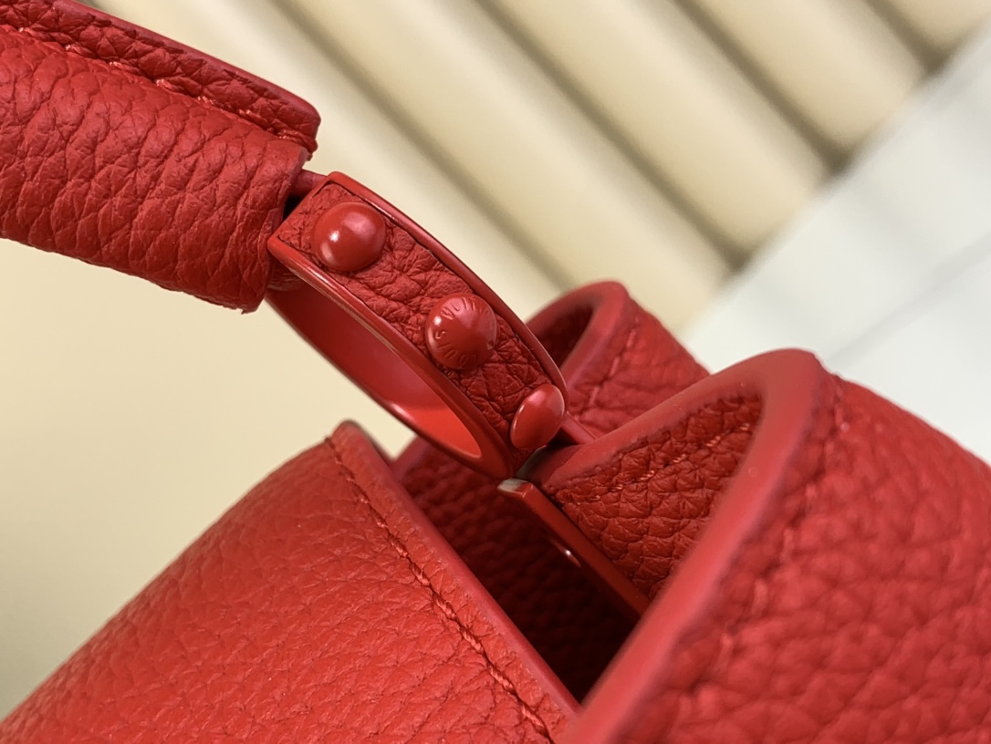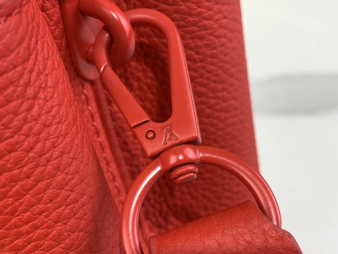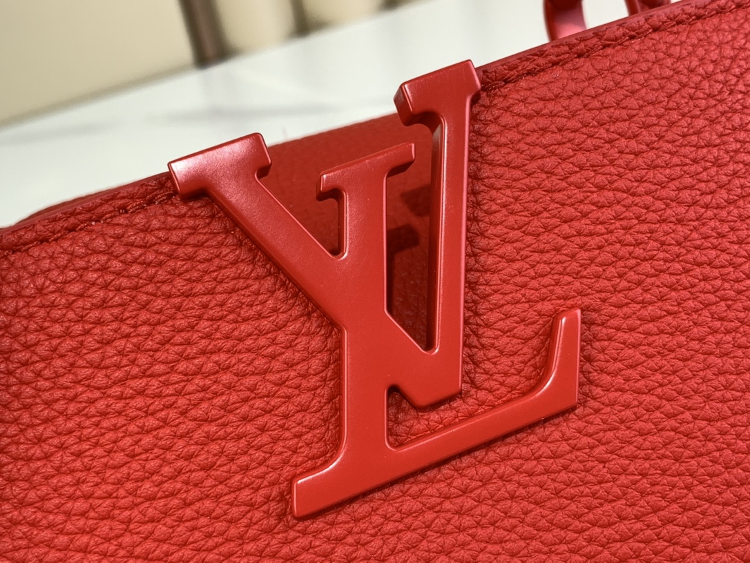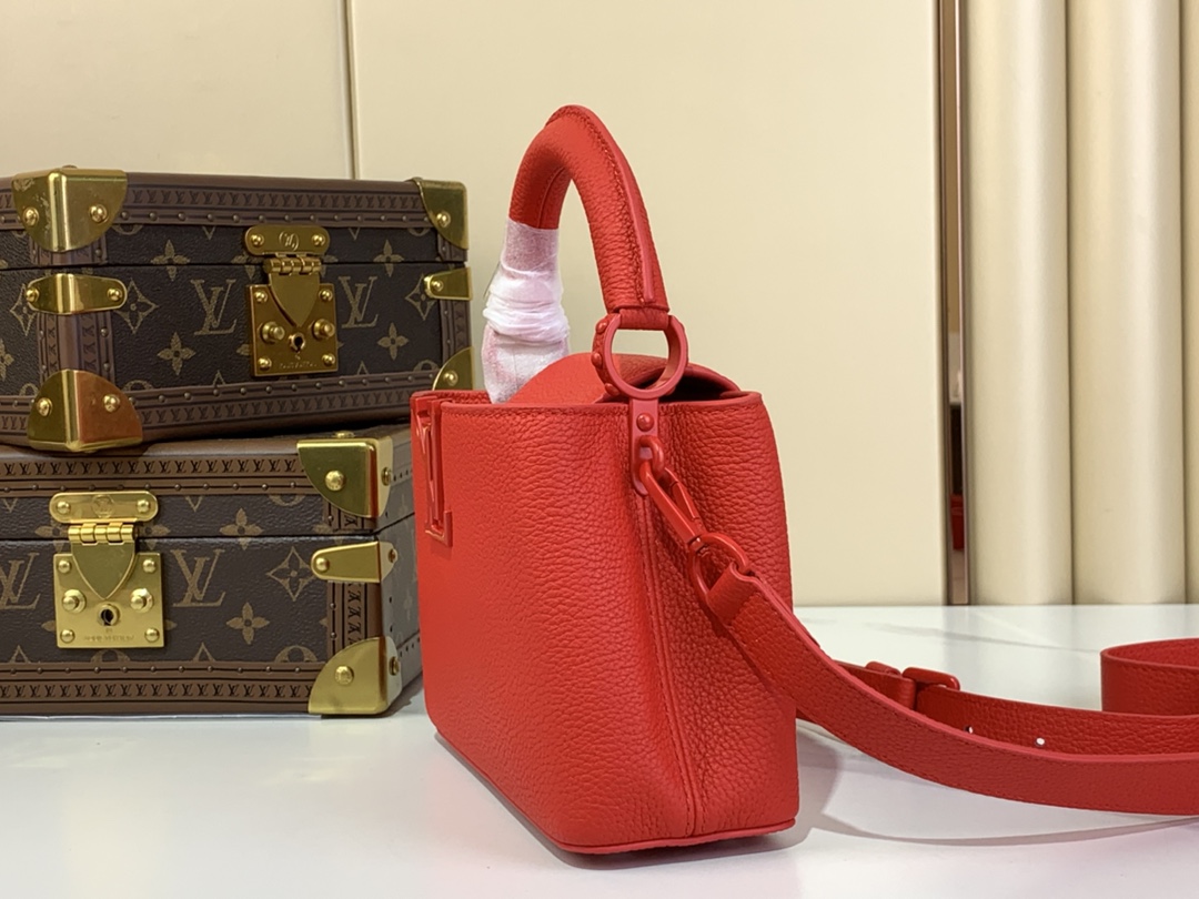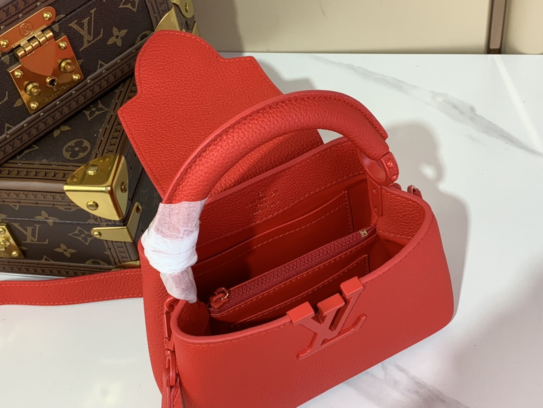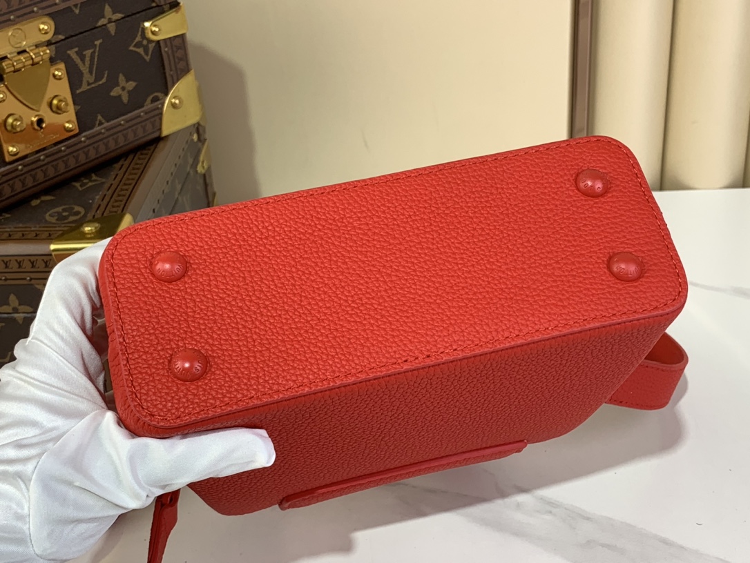 The Capucines line exemplifies the artisanal savoir-faire of Louis Vuitton – it is named after the House’s first store, which opened in 1854. This Mini version is reimagined in a bold lipstick red - adding brightness to the monochromatic collection - crafted from matte Taurillon leather enhanced with tonal hardware. Inside, there is enough space for the essentials, plus a neat flat pocket to store cards.