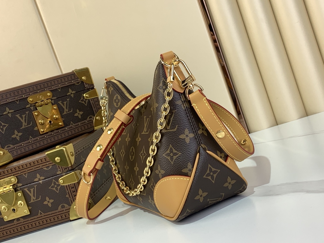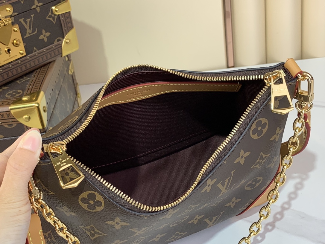 The versatile Boulogne bag is made from classic Monogram canvas and features a removable strap, enabling cross-body, long-shoulder and short-shoulder carry. Without its strap, the Boulogne becomes a small chain bag or clutch for more formal occasions. It has a double-zip opening and an inside flat pocket large enough for an iPhone 12 Pro.