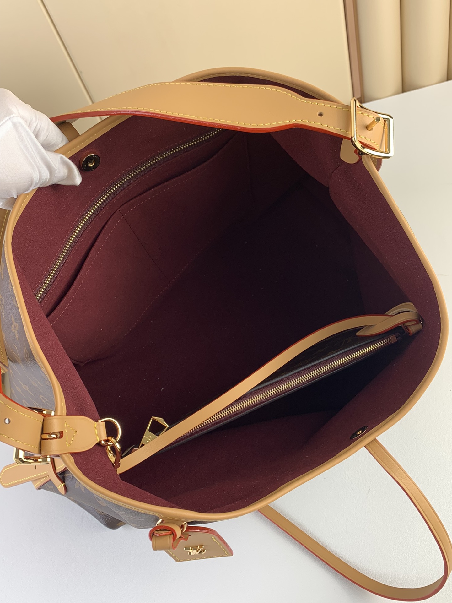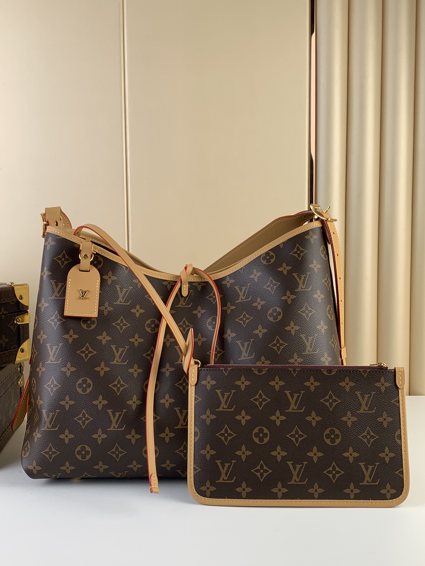 Louis Vuitton launches the CarryAll MM bag in Monogram canvas with a natural leather trim. Its contemporary, body-friendly design and roomy interior make this a fantastic everyday bag. Inside zipped pockets and a removable zipped pouch deliver even more functionality. A gold-colour buckle allows the handle to be shortened or lengthened.