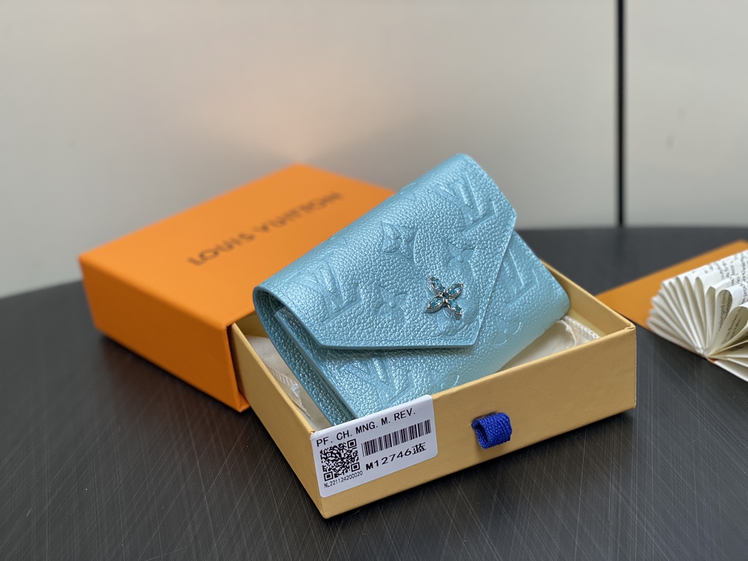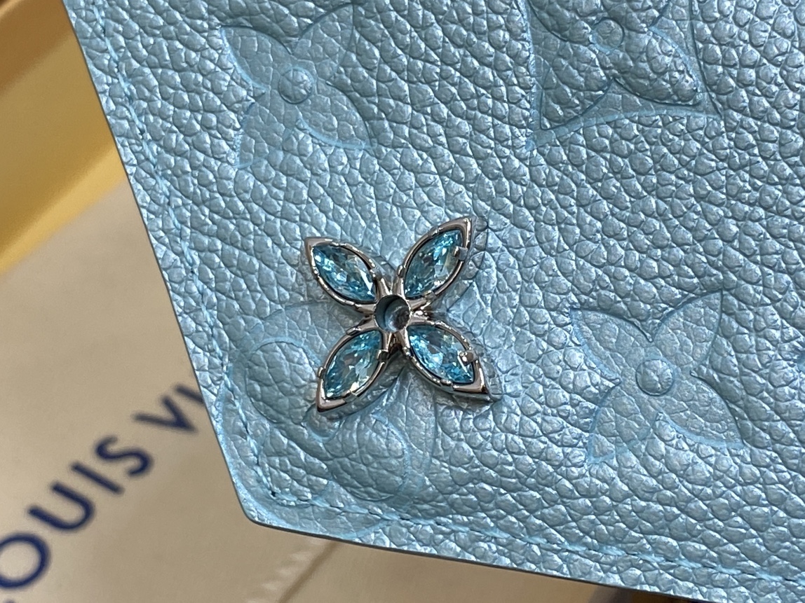 Part of the LV Ski collection, this Victorine Wallet is a standout choice thanks to the elegant Azur Frost shade and 'Shimmery' effect. It is made from signature Monogram Empreinte leather adorned with a Monogram Flower press stud, embellished with shimmering crystals. Inside, there is plenty of space to organize cards, banknotes and coins.