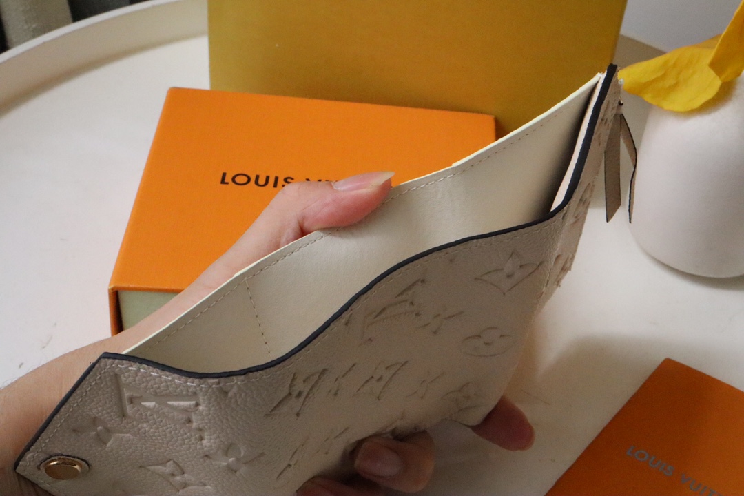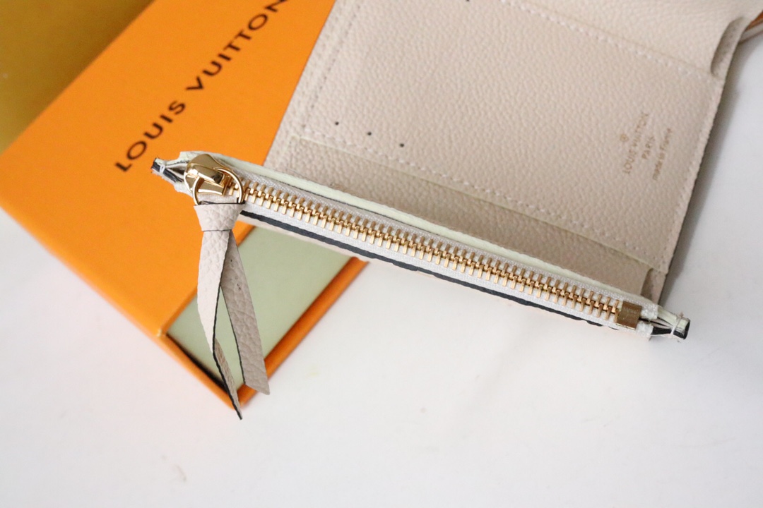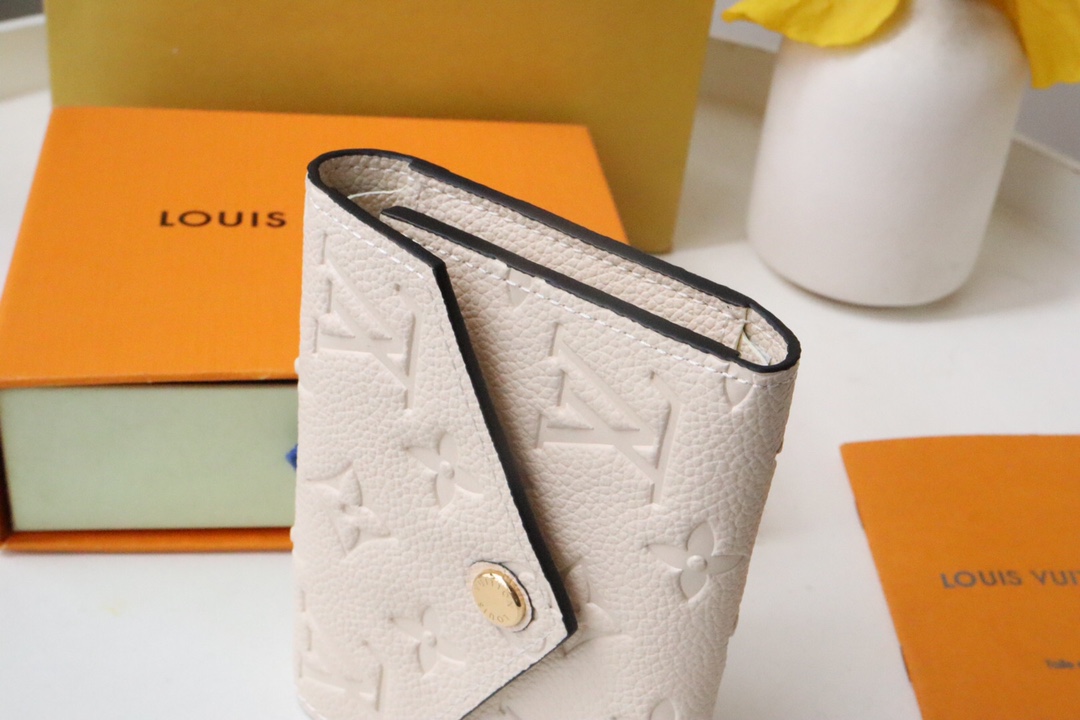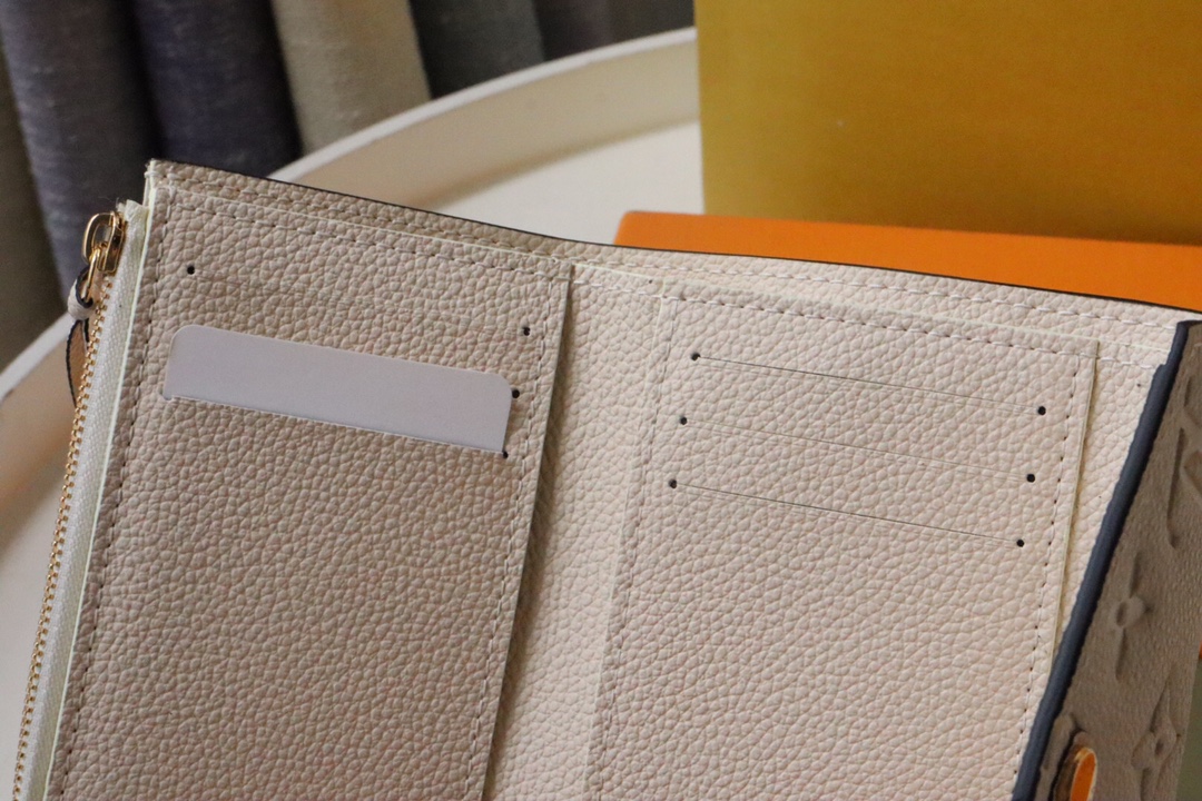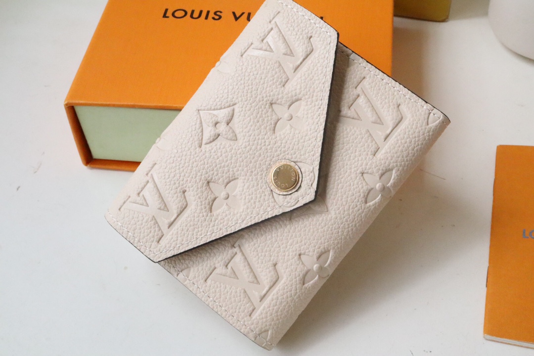 The Victorine envelope-style wallet is crafted from supple Monogram Empreinte leather, embossed with the iconic Monogram pattern. This compact, feminine wallet is characterized by its exceptionally functional design, which opens out to reveal an array of practical features, including card slots, a pocket for bills and a zipped coin compartment on the side.