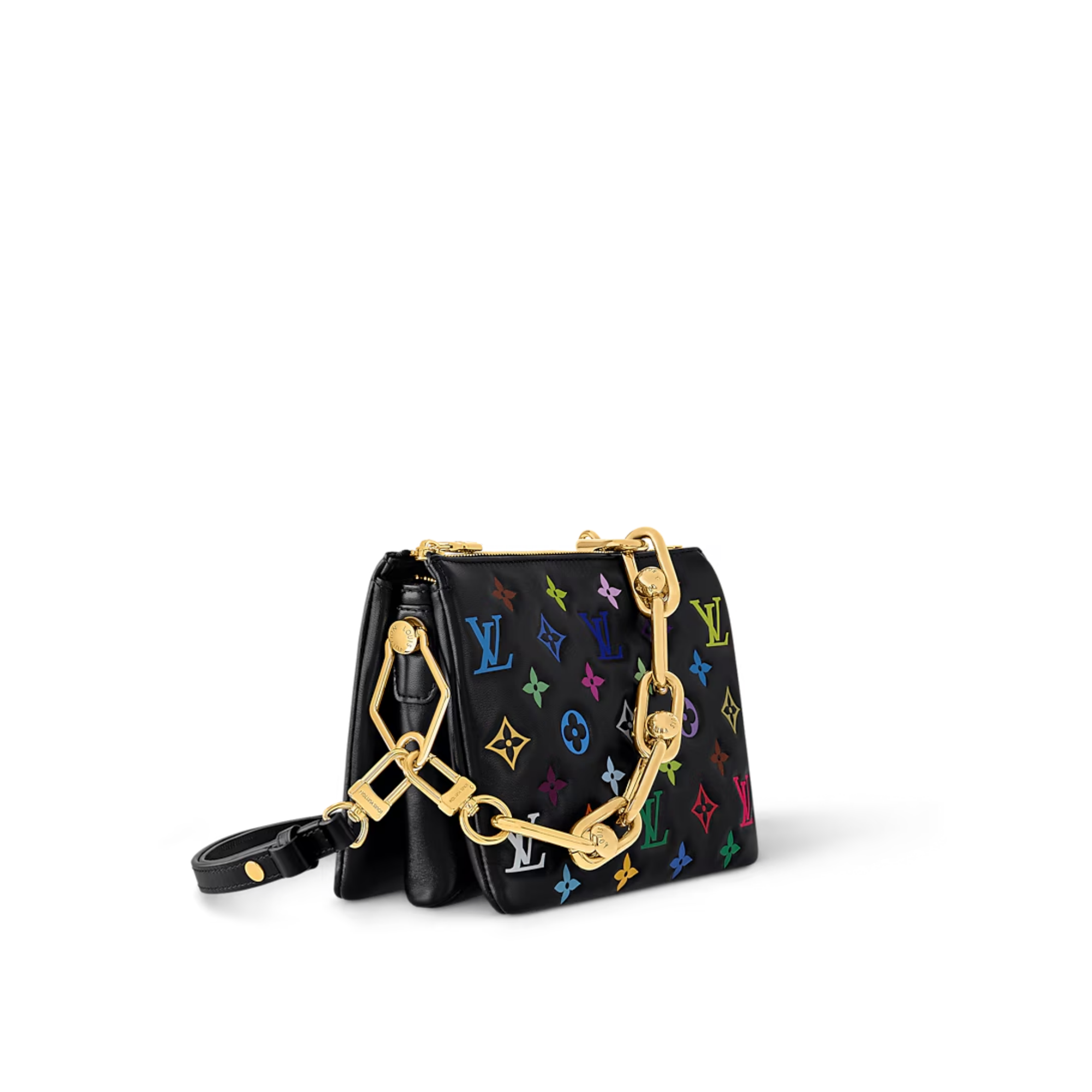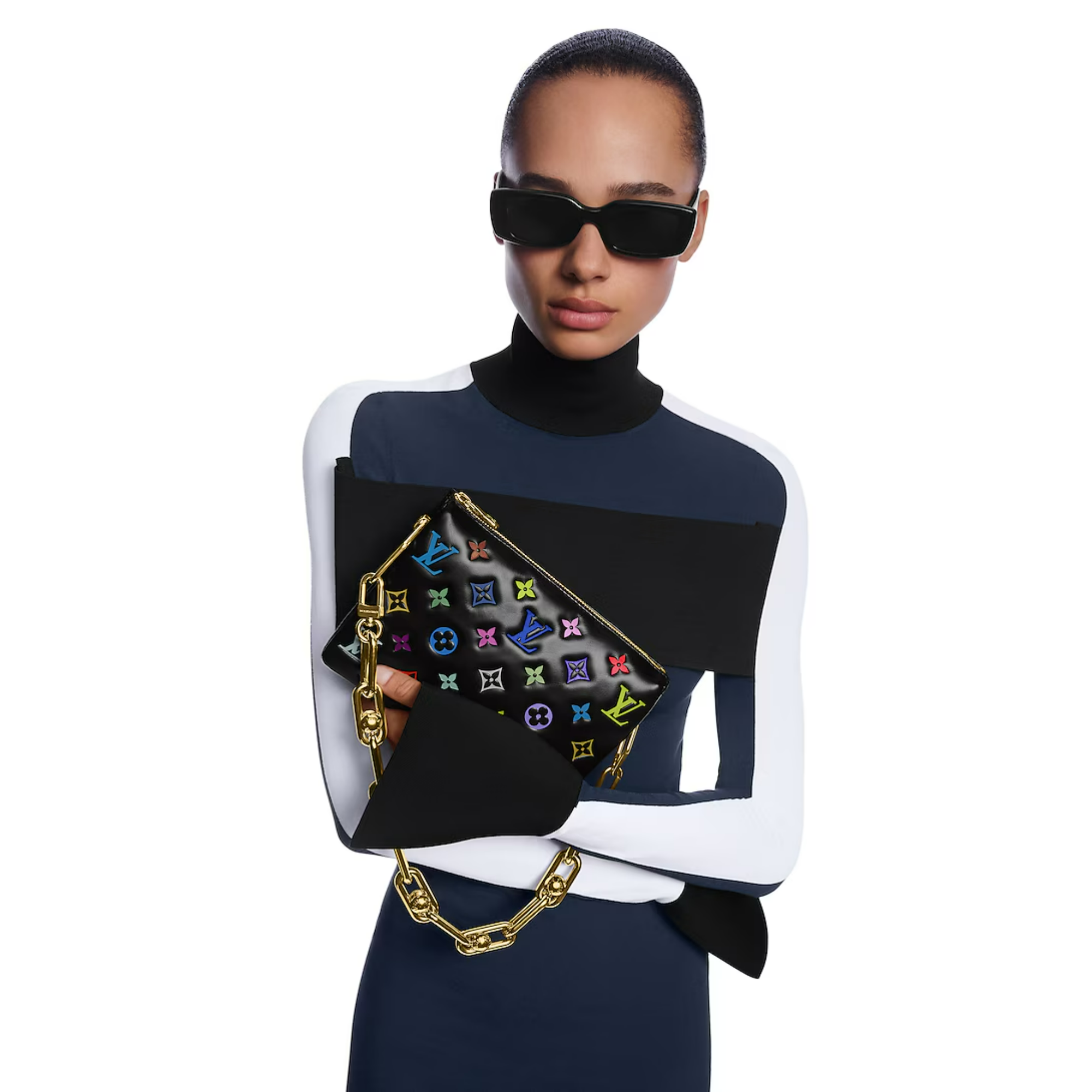 A bold Monogram Multicolor motif elevates the House’s classic Coussin BB handbag with a playful spirit as part of the celebratory second edition of the Louis Vuitton x Murakami collection. Crafted from puffy lambskin, a chunky golden chain and an adjustable smart leather strap offer versatile styling options, while the inside stows daily essentials such as a smartphone and a compact wallet.