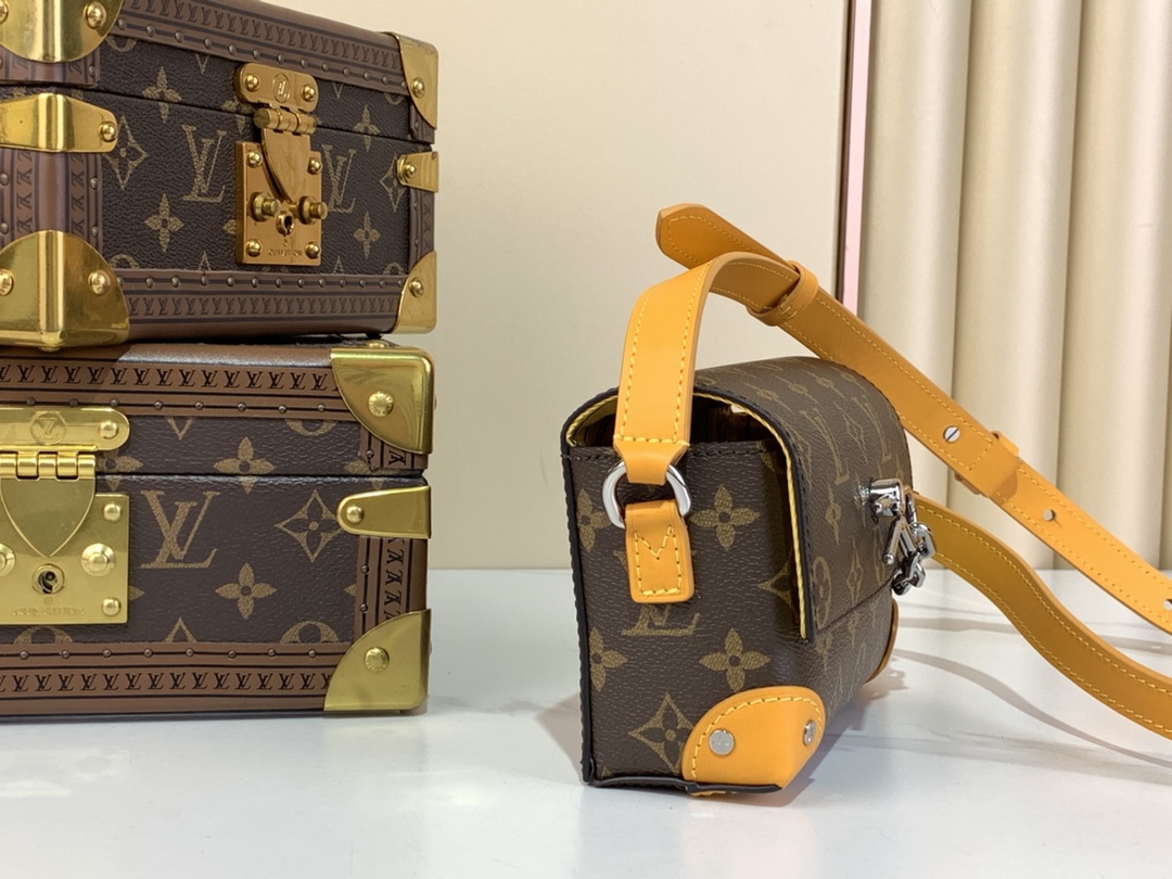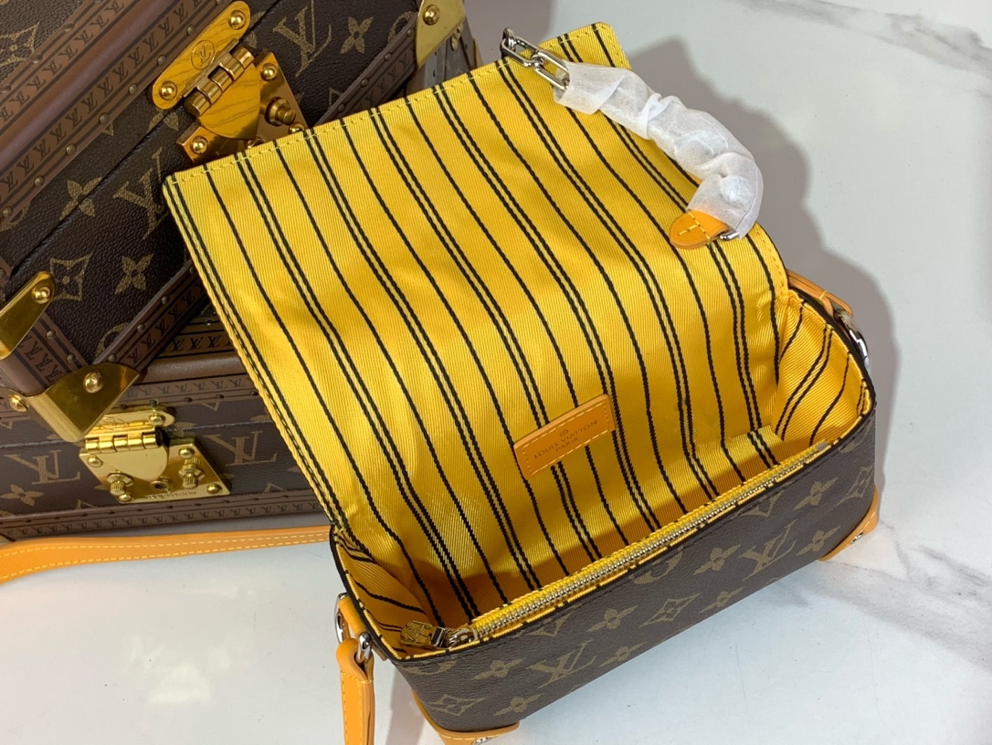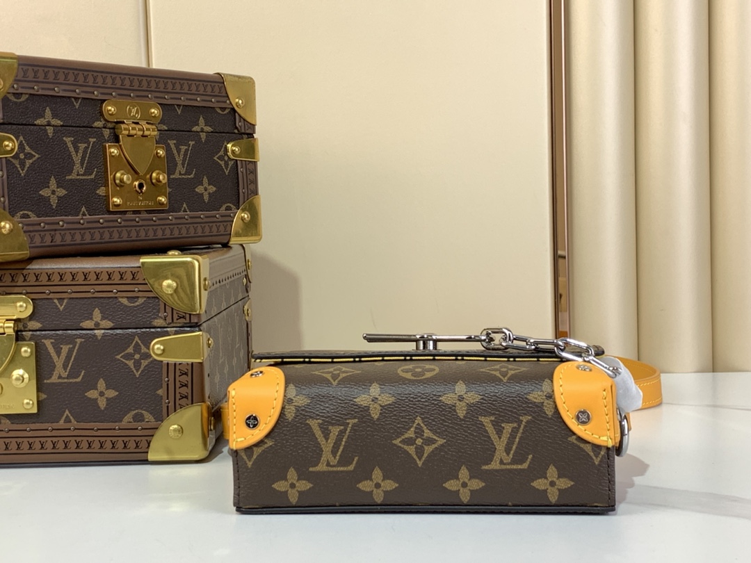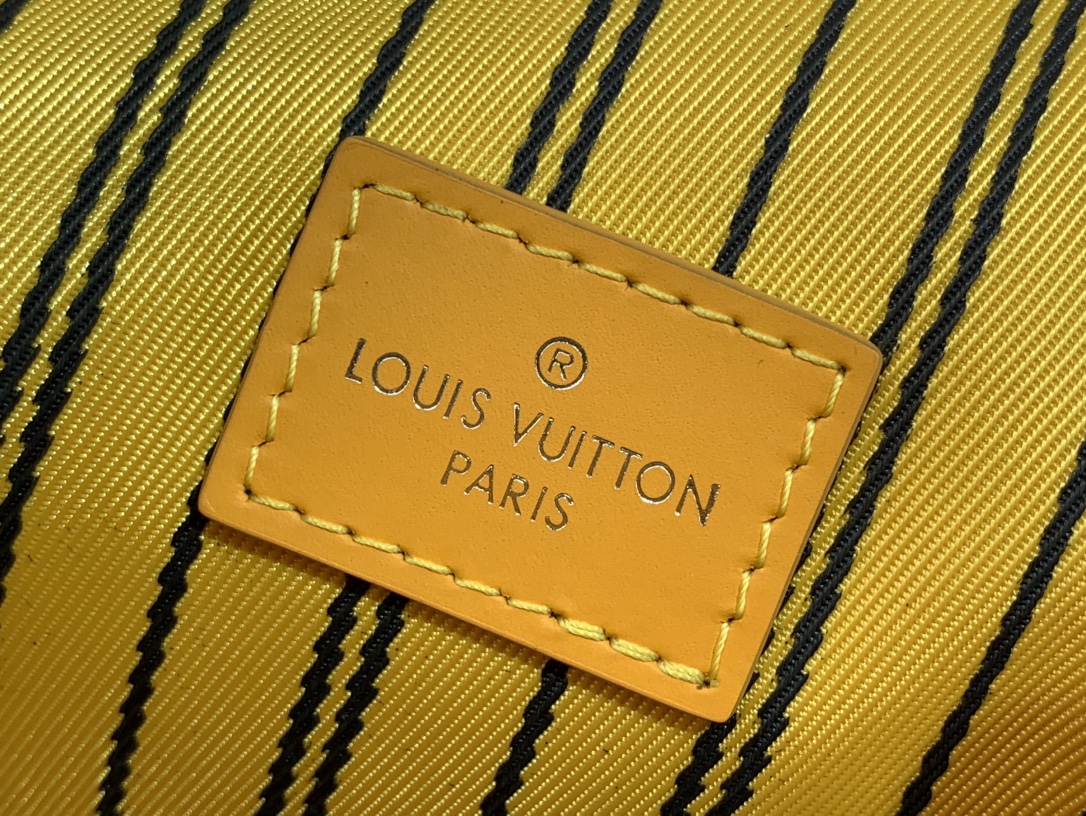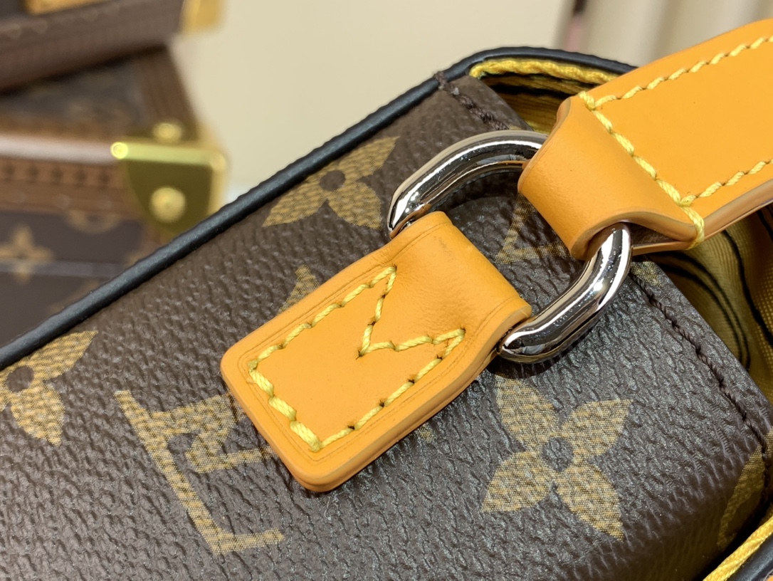 The Steamer Wearable Wallet is made from Monogram Macassar coated canvas, adorned with a hint of lively color on the reinforced corners and adjustable strap. The pin-and-chain closure, signature of the original Steamer bags, is in a silver color. This wearable wallet features striped textile lining in the same colorway as the strap.