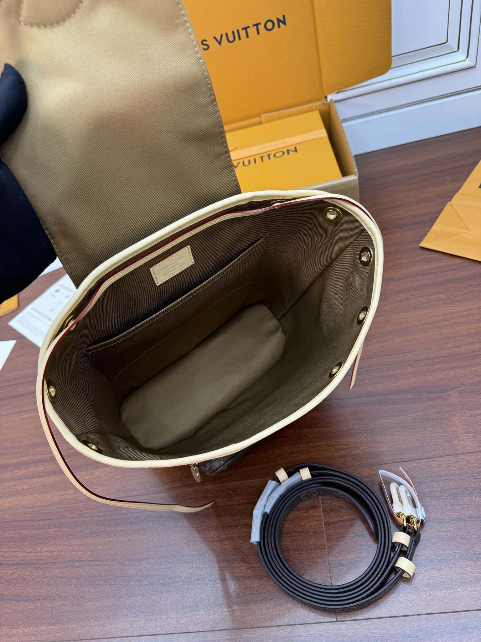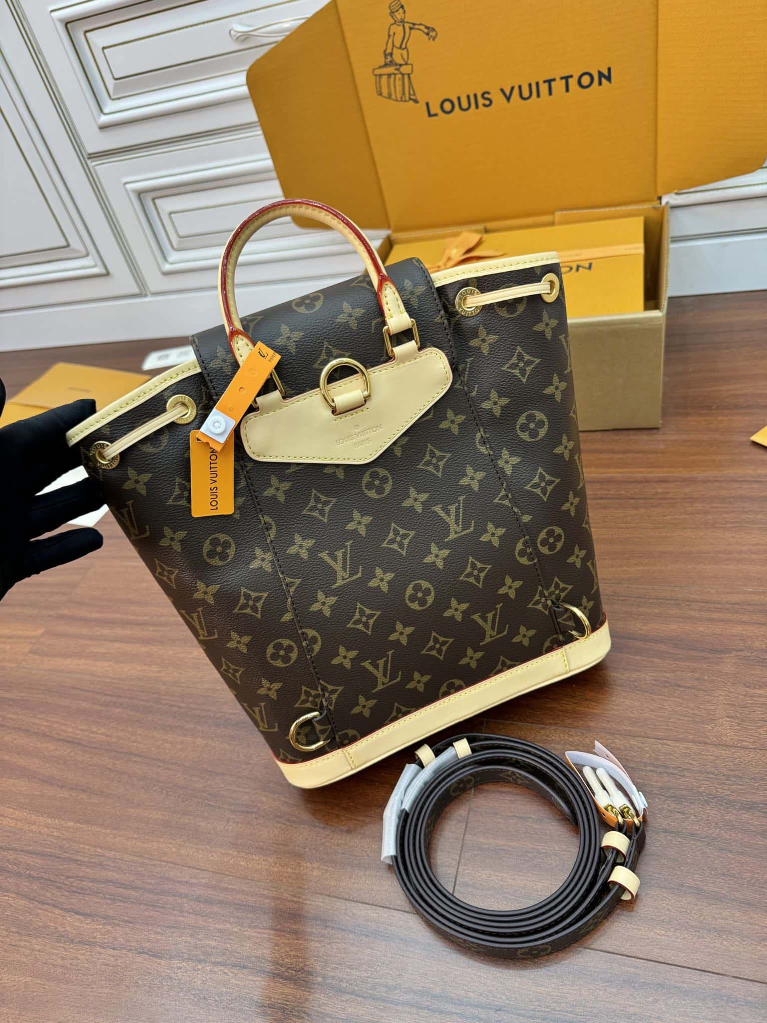 Inspired by the House’s Montsouris bag from 1994, the practical and stylish Montsouris PM backpack by Nicolas Ghesquière is made from Monogram coated canvas, with cowhide-leather trim. The leather top handle and two adjustable monogram canvas straps give carry options while the tasteful drawstring and magnetic closure bring security.