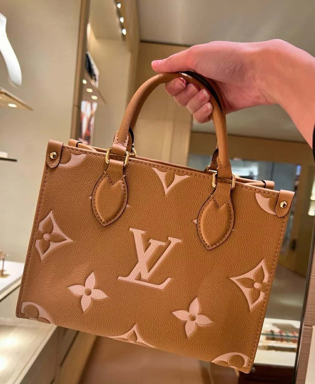 This versatile OnTheGo PM tote showcases the House’s signature embossed leather, patterned with the iconic Monogram motif in a contrasting colorway. A polished choice for everyday use, it is finished with refined gold-tone hardware. The articulated top handles and adjustable strap offer multiple carry options.