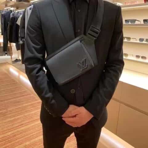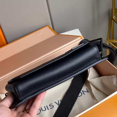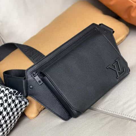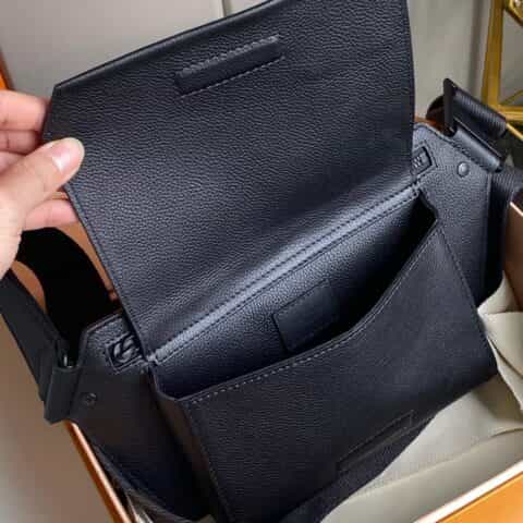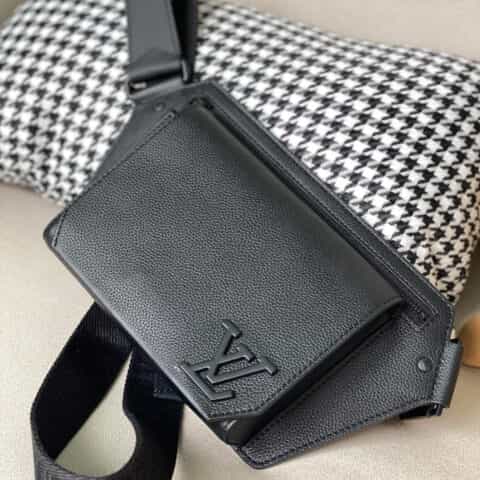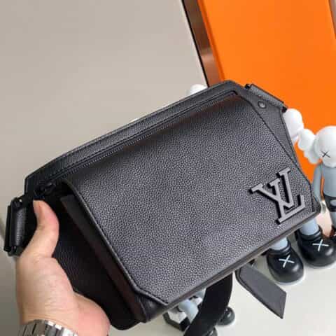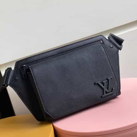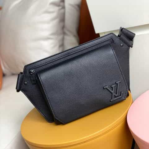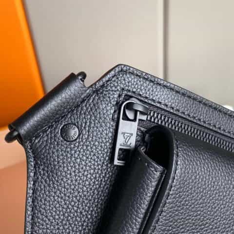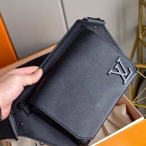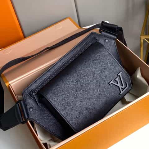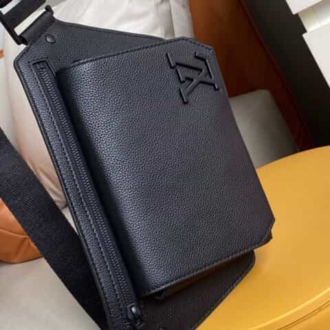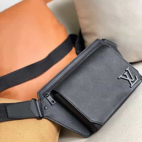Its spare design and rich grained calf leather make the LV Aerogram Takeoff Sling bag a practical hands-free accessory for the fashion-conscious man. The 'LV' initials in black metal and a strap inspired by the House’s historic trunks add a subtle signature touch. The spacious main compartment, with its bevelled flap and magnetic closure, is supplemented by a secure zipped pocket.