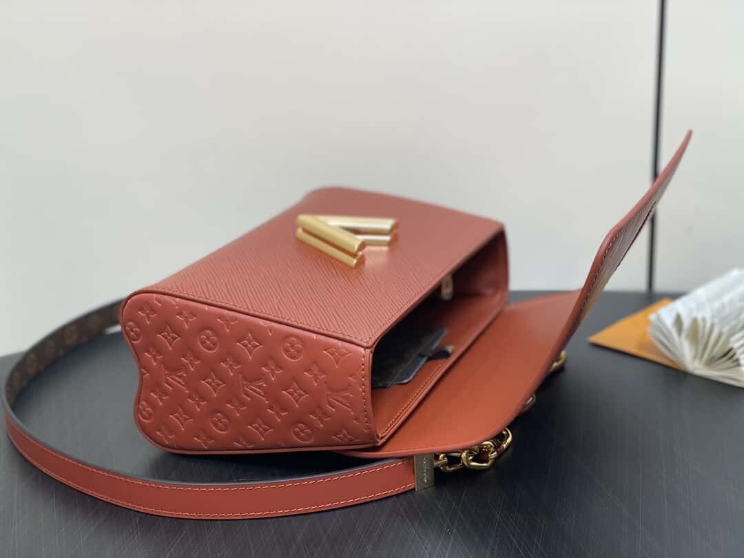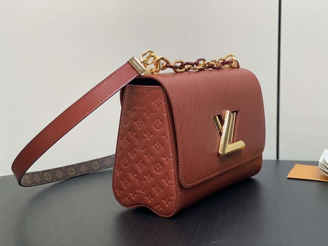 The Slim version of the classic Twist MM handbag makes it the perfect body-friendly companion. Crafted from the House’s signature Epi leather, it is embellished with a gold-toned LV Twist lock and decorative resin plated chain, which collectively add to its sophisticated appeal. The interior is organized with several pockets, including a removable mirror and a zipped compartment for coins or keys.