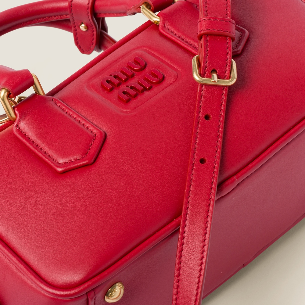 This Arcadie leather bag expresses a notion of fashion as a means of translating a reaction to current reality into material form. The light padding gives the bag a voluminous look and a cosmopolitan style. The lettering logo, which echoes the finishes of the metal hardware, crosses the boundaries between function and decoration and helps to define the distinctive and iconic aesthetic of the top-handle bag.