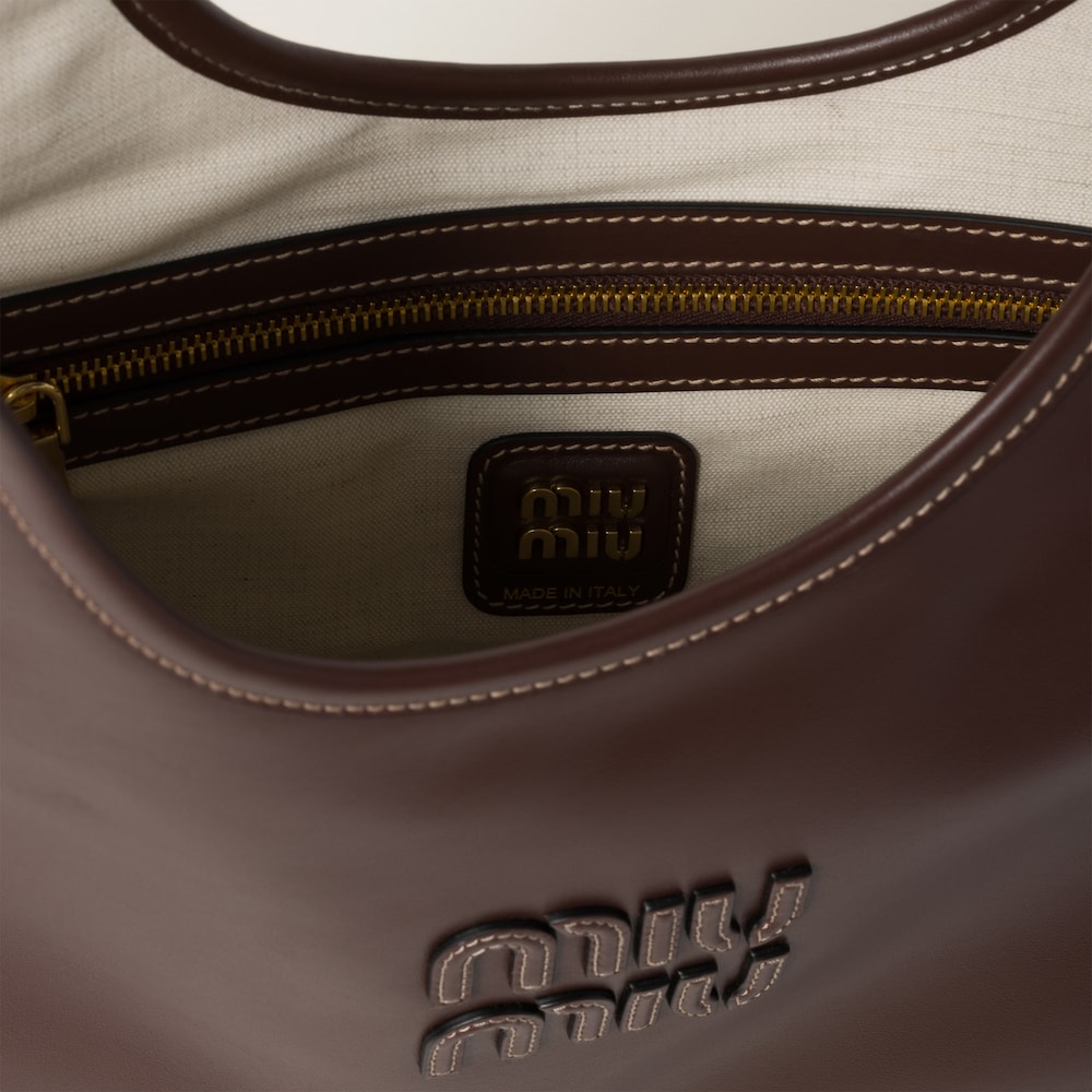 In this IVY leather bag, a classic style is enhanced with metal details and the Miu Miu lettering logo that gives the design an iconic and immediately recognizable note.