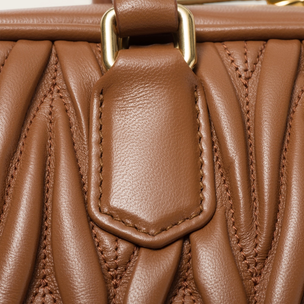 Precious matelassé workmanship revisits the classic silhouette of the top-handle bag thanks to its three-dimensional, textured, and extremely sophisticated effect. The lettering logo on the front that echoes different metallic finishes of the hardware stands out against the artisan motif with an iconic and immediately recognizable touch. The dynamic and elegant lines and the adjustable, detachable shoulder strap contribute to the versatile, functional and modern design of the bag.