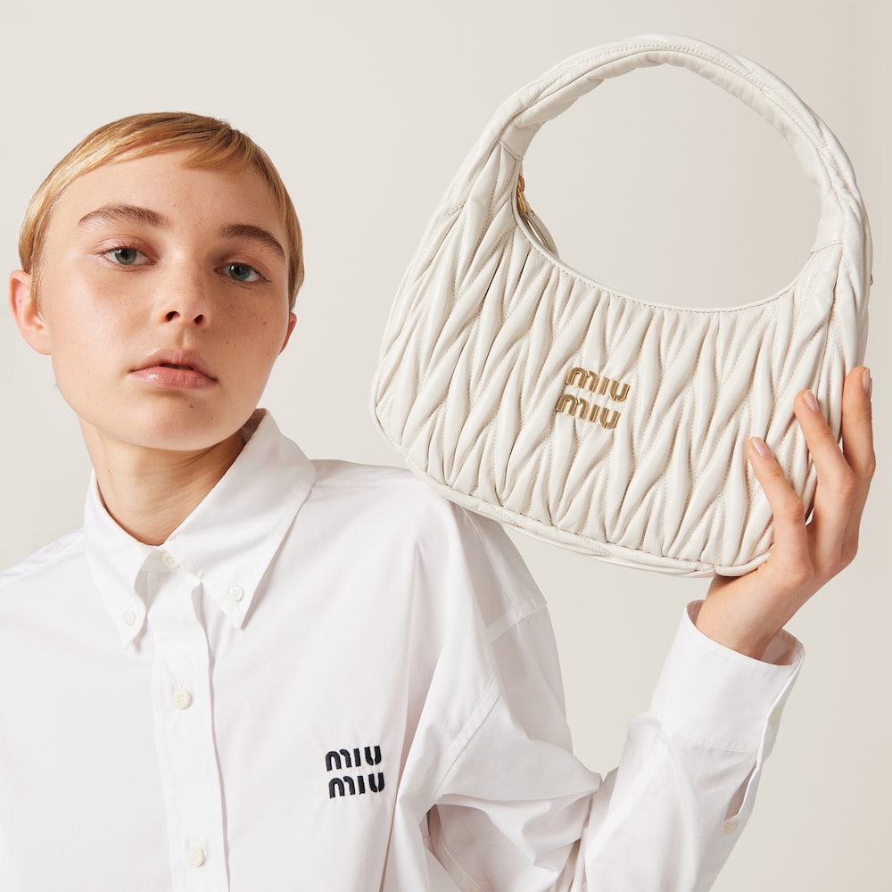 The luxurious matelassé motif gives a three-dimensional, textured, and extremely sophisticated look to the compact lines of the new Wander bag in matelassé nappa leather. The alluring metal logo that echoes the gold-tone hardware stands out against the refined artisan technique with an iconic, shiny and immediately recognizable touch. The sleek lines and removable shoulder strap define the elegant yet dynamic silhouette.