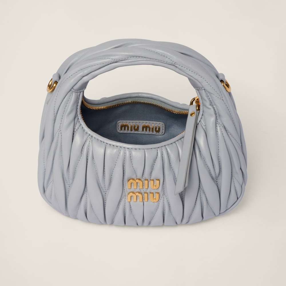 This mini version of the Wander matelassé nappa leather bag is characterized by the sophisticated three-dimensional effect created by the exquisite workmanship. The hobo shape, blending retro inspirations and contemporary elegance, becomes a new synonym of modern femininity.