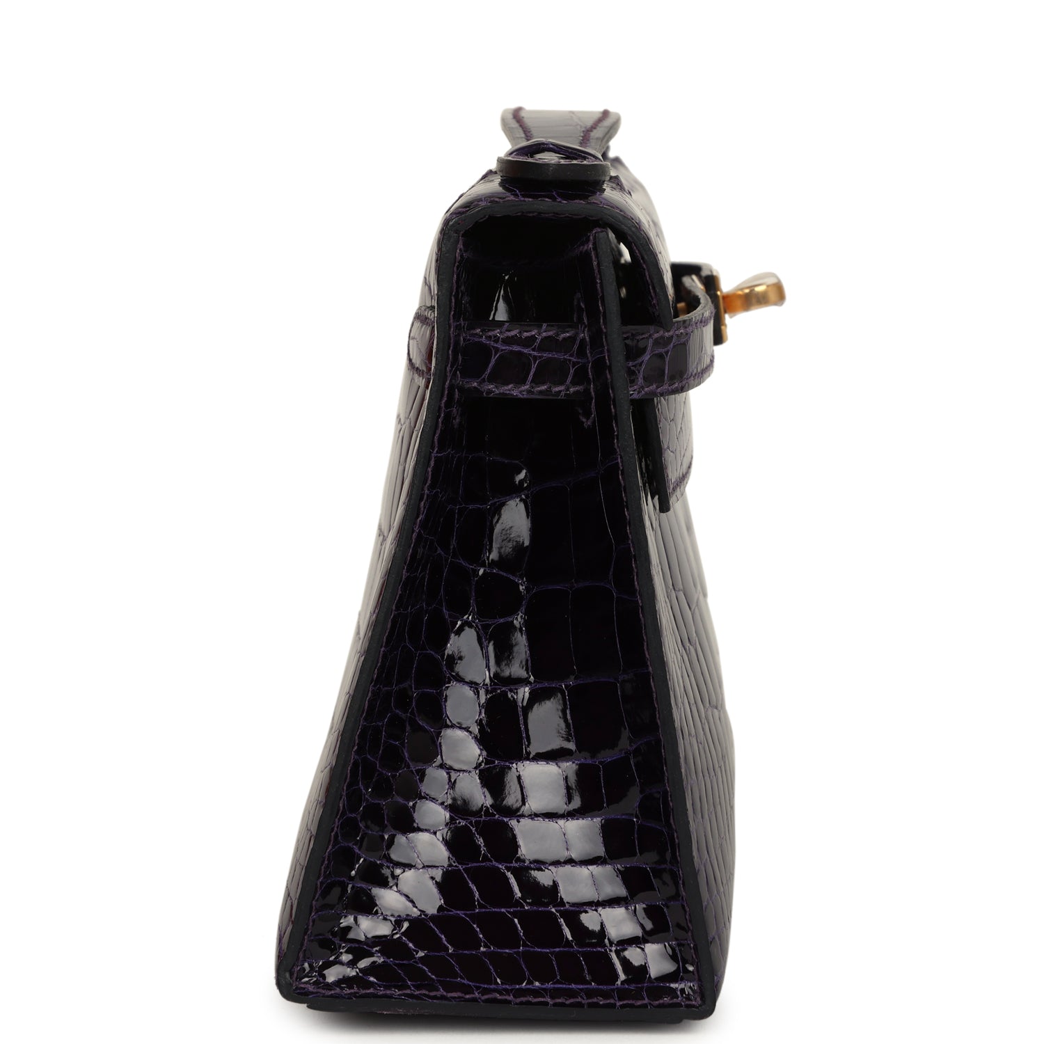 Hermes Kelly Pochette Amethyst Shiny Alligator Gold Hardware