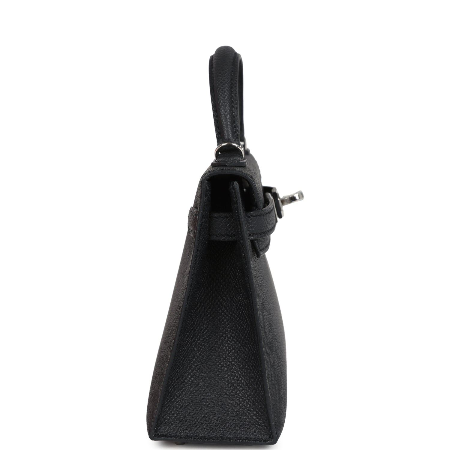 This Kelly, in the Sellier style, is in Black epsom leather with palladium hardware, has tonal stitching, two straps with front toggle closure, a single rolled handle, and a removable shoulder strap.