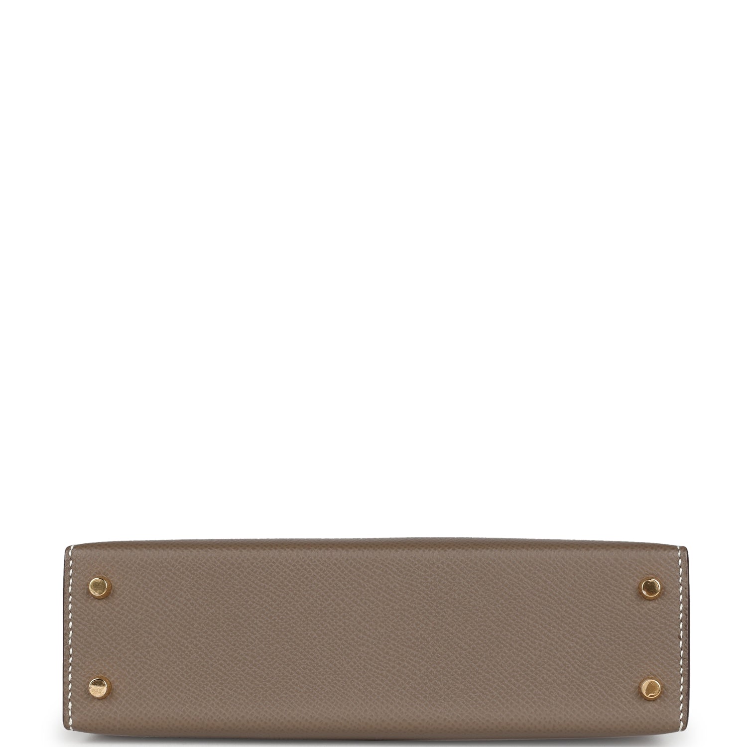 This Kelly, in the Sellier style, is in Etoupe epsom leather with gold hardware and has contrast stitching, two straps with front toggle closure, single rolled handle and removable shoulder strap.