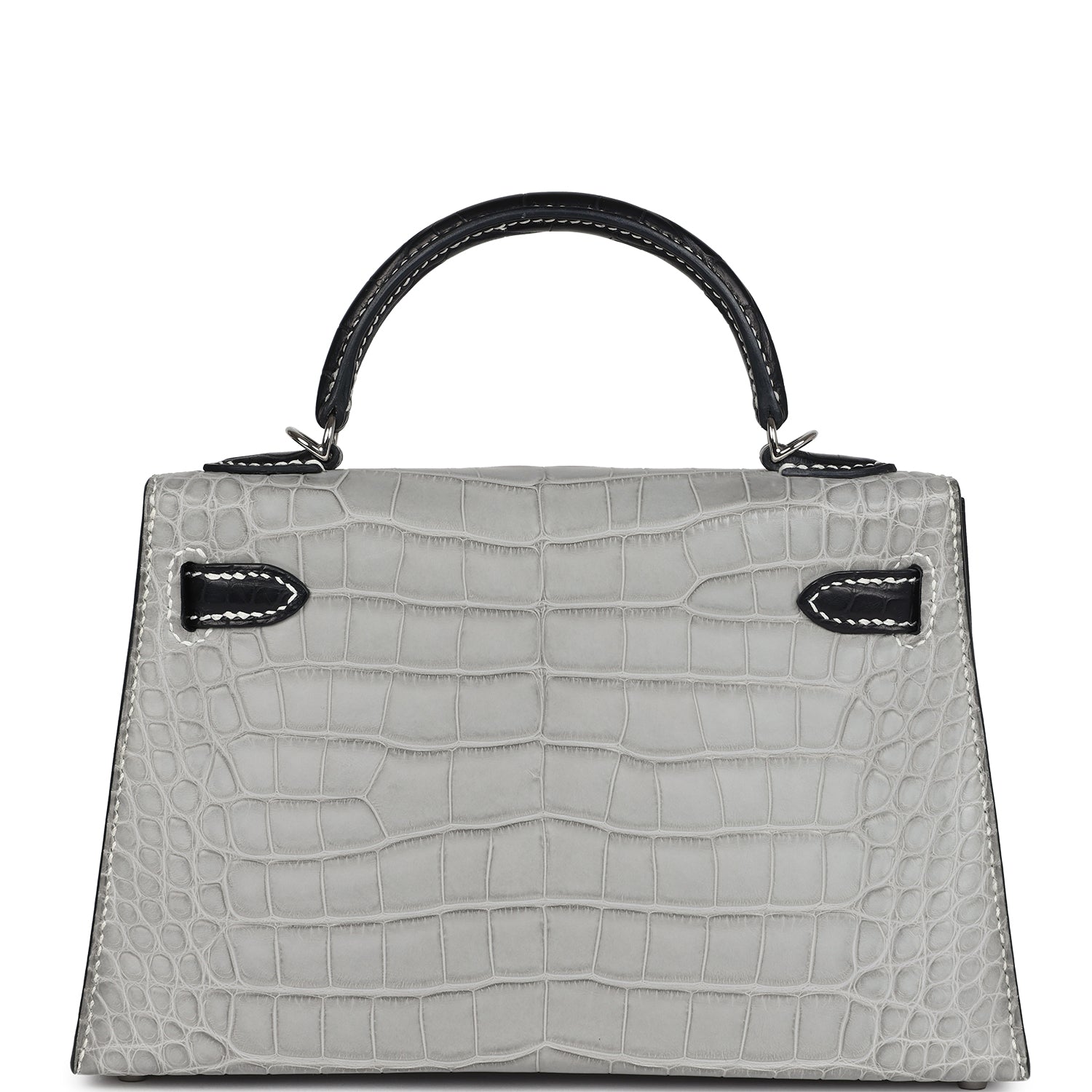 Hermes Special Order (HSS) Kelly Sellier 20 Gris Perle and Black Matte Alligator Palladium Hardware