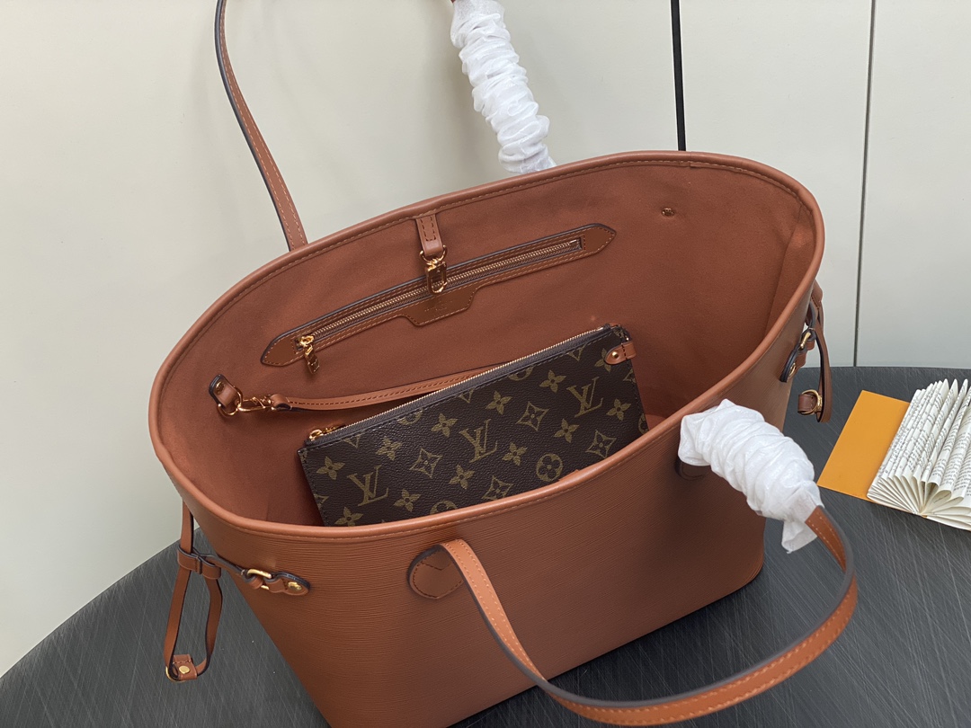 Ideal for city commutes and beyond, the iconic Neverfull MM tote unites timeless design with heritage details. This edition is crafted from signature Epi leather and has adjustable side laces to cinch the silhouette, which is capacious enough to store a 13” laptop. The removable zipped pouch can be used as a clutch or an extra pocket for valuables.